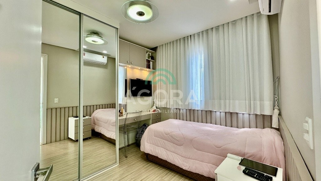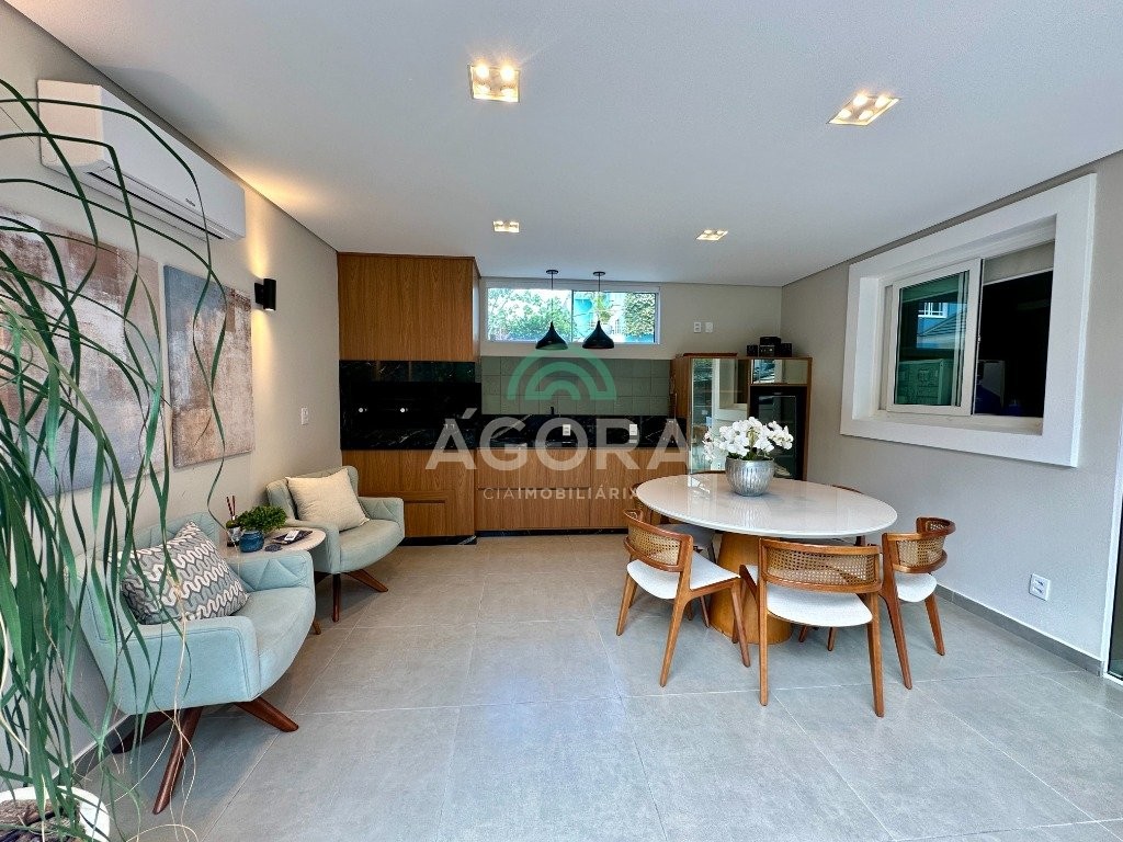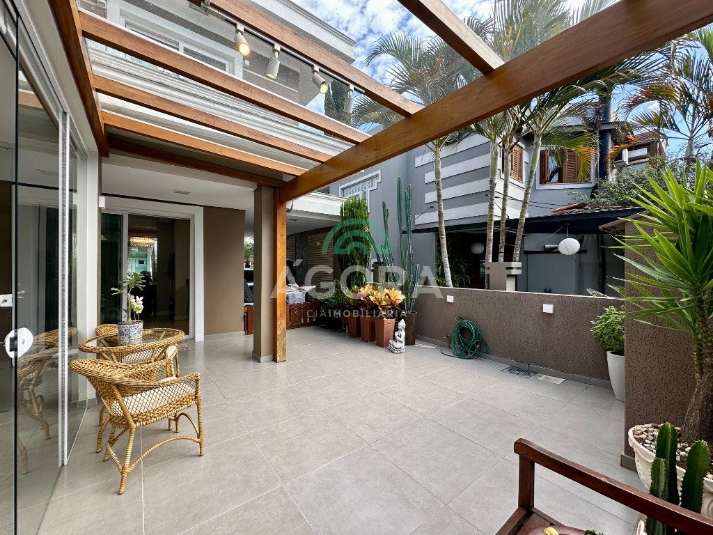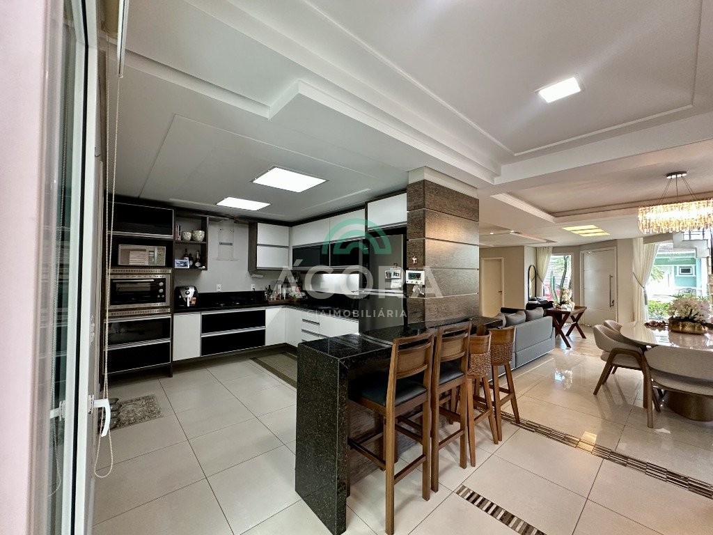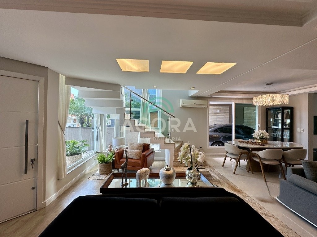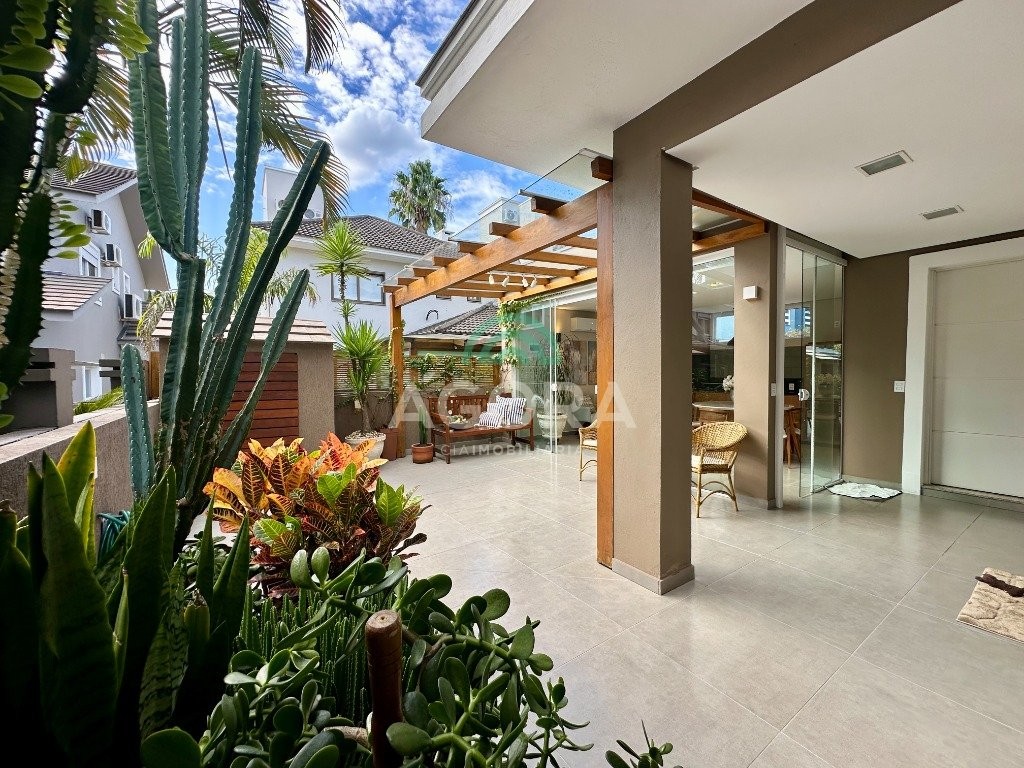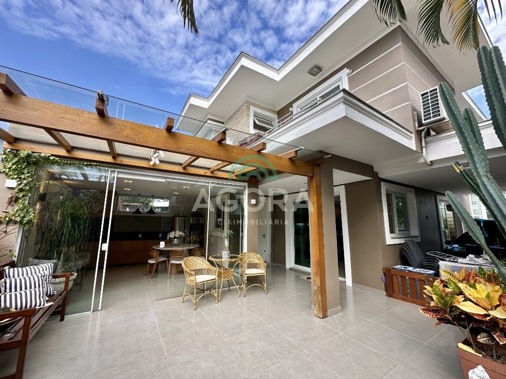 Sobrado totalmente mobiliado de 280m² privativos com 4 (quatro) dormitórios, sendo 1 (uma) suíte com closet, banheira e sacada. Amplo espaço de living com lareira, cozinha separada com churrasqueira, mezanino com sacada, espaço aos fundos climatizado com área gourmet completa e mais um espaço livre. Possui 3 (três) vagas para veículos. Condomínio com infraestrutura completa!