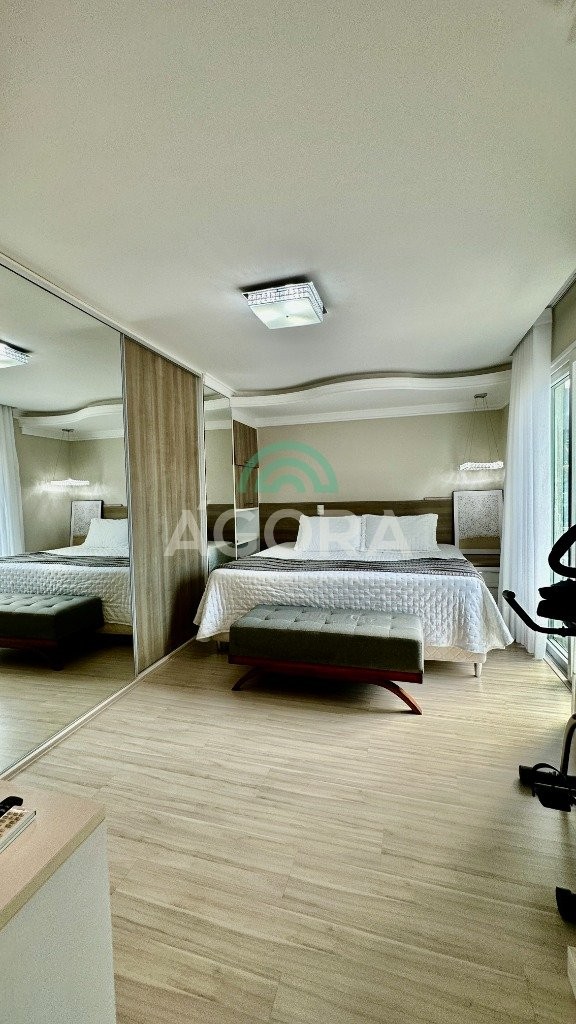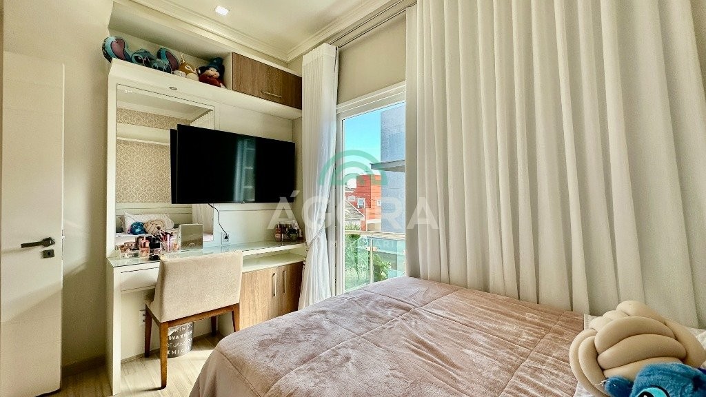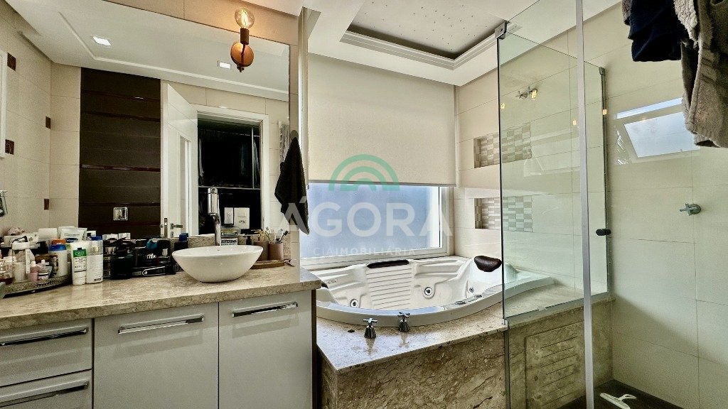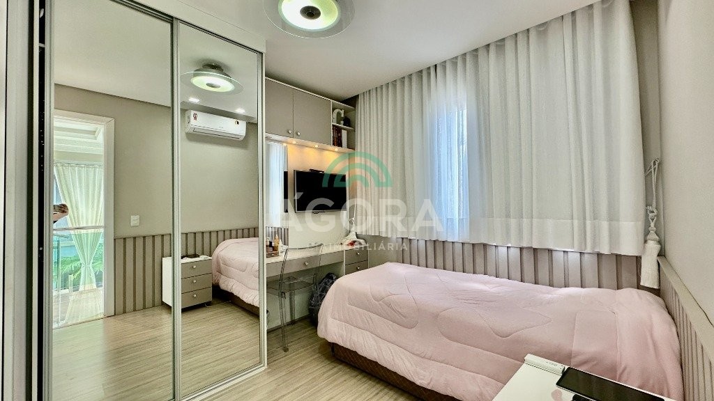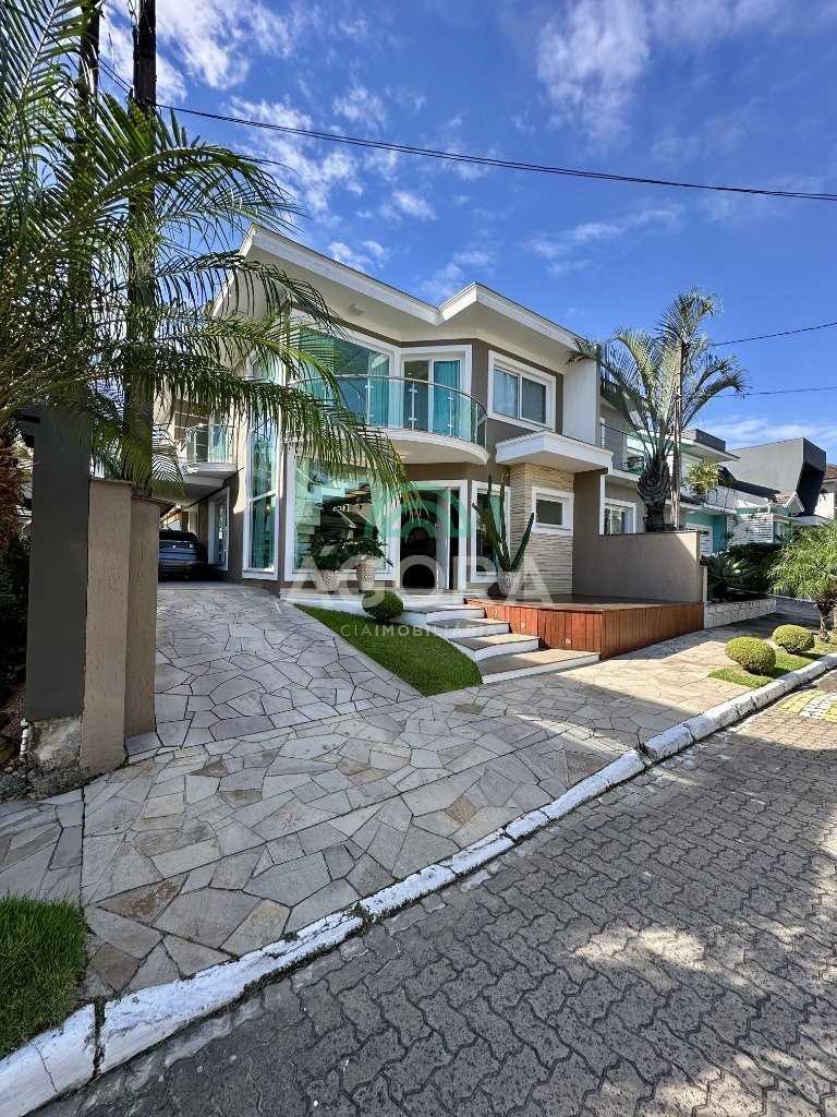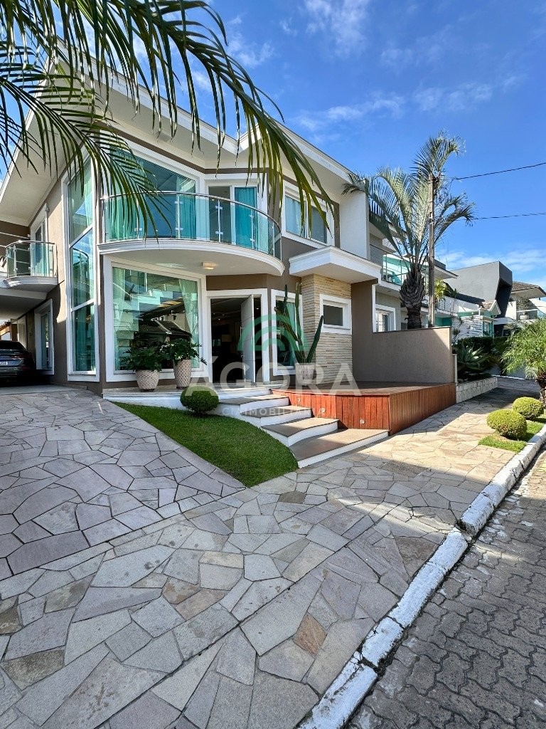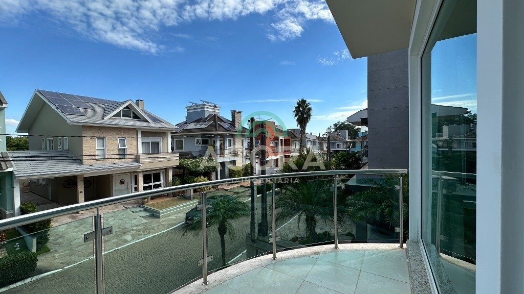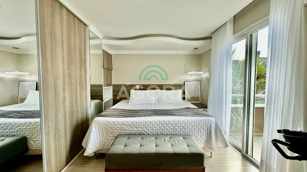 Sobrado totalmente mobiliado de 280m² privativos com 4 (quatro) dormitórios, sendo 1 (uma) suíte com closet, banheira e sacada. Amplo espaço de living com lareira, cozinha separada com churrasqueira, mezanino com sacada, espaço aos fundos climatizado com área gourmet completa e mais um espaço livre. Possui 3 (três) vagas para veículos. Condomínio com infraestrutura completa!