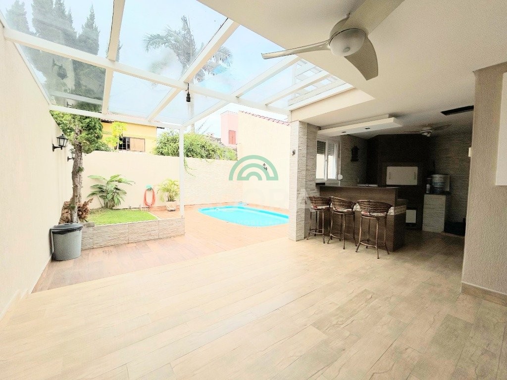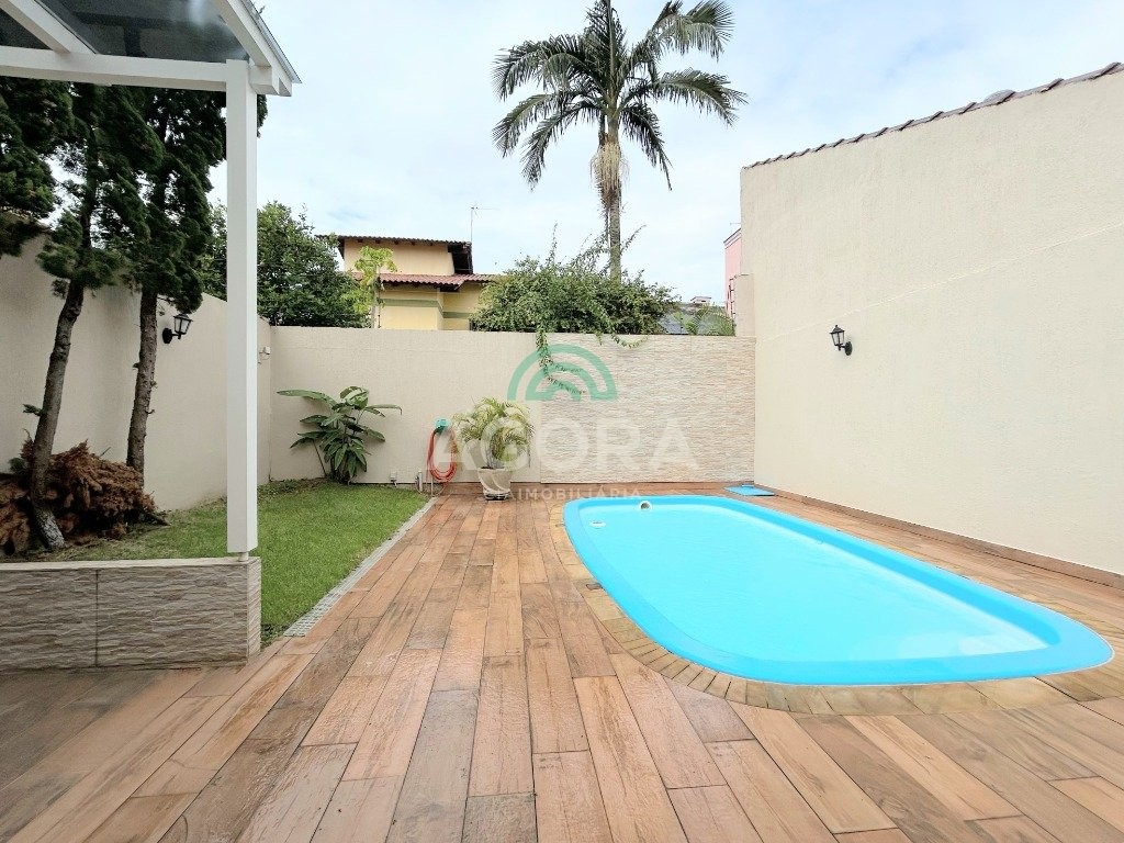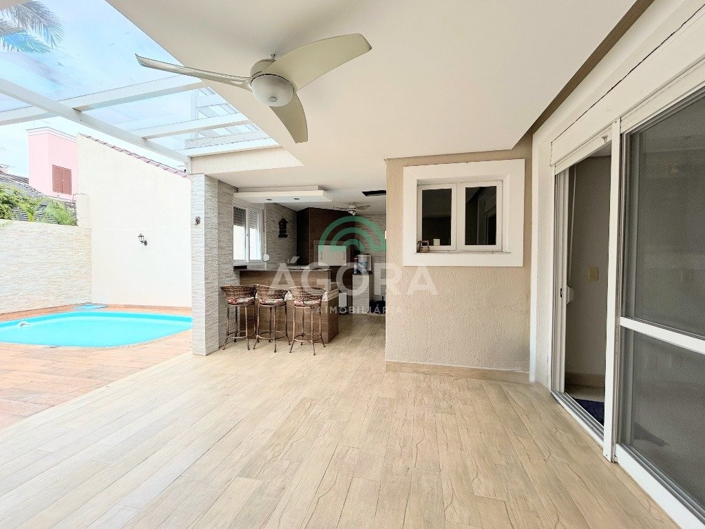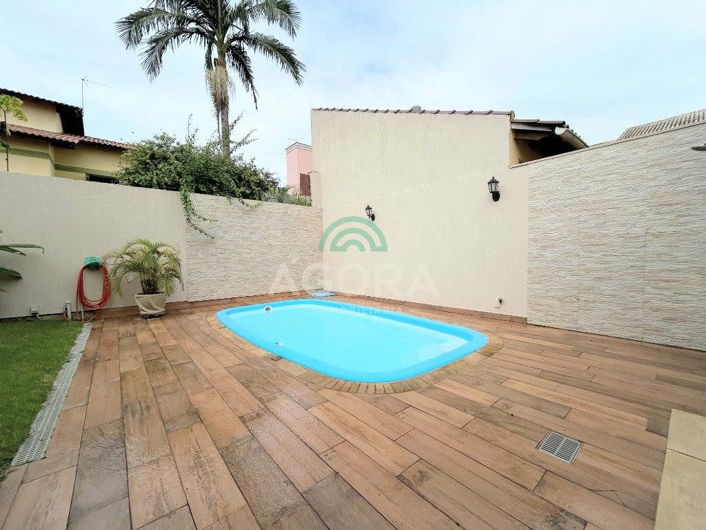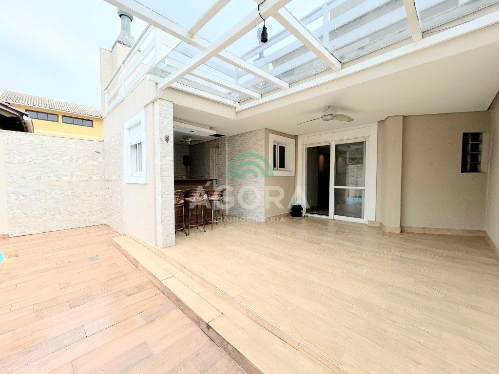 Ótimo sobrado de 242m² privativos, com 3 (três) dormitórios, sendo 3 (três) suítes, 1 (uma) sendo master com closet e banheira de hidromassagem, terraço com vista para os fundos, poço de luz entre a sala de estar, jantar e cozinha, 5 (cinco) banheiros, sendo 1 (um) lavabo, área de serviço, sótão, amplo pátio aos fundos com piscina e pergolado, espaço gourmet completo com churrasqueira, garagem coberta para 2 (dois) veículos. Permanece no imóvel todos os móveis sob medida na cozinha, closet e banheiros, 5 (cinco) aparelhos de ar condicionado, possui também piso porcelanato nas áreas sociais e laminado nos dormitórios, rebaixo em gesso em todos os ambientes, cerca elétrica e sistema de placas solares.