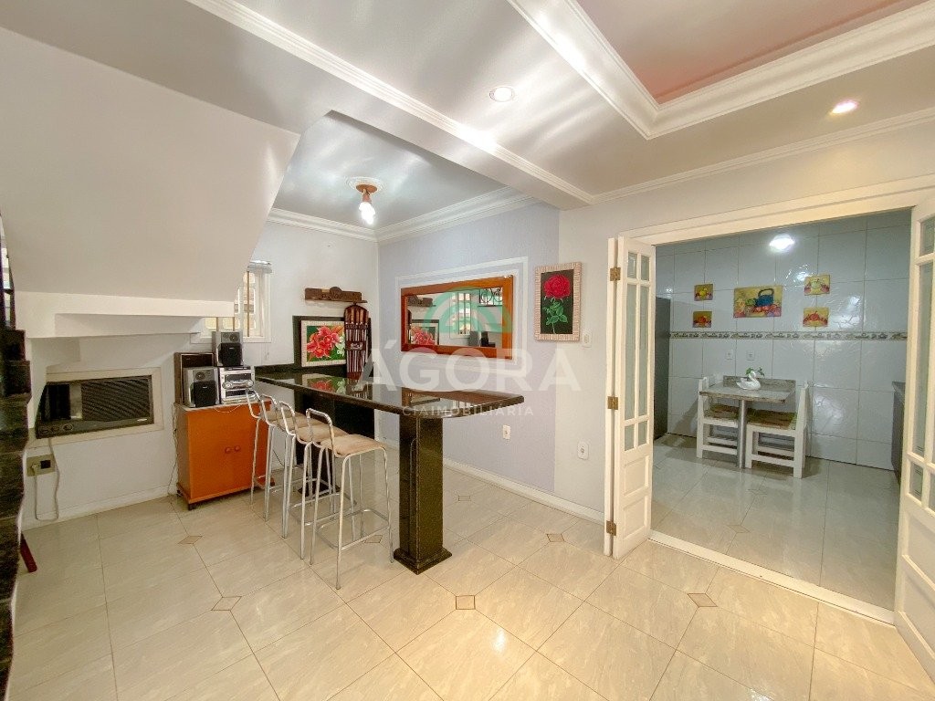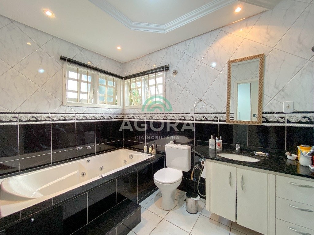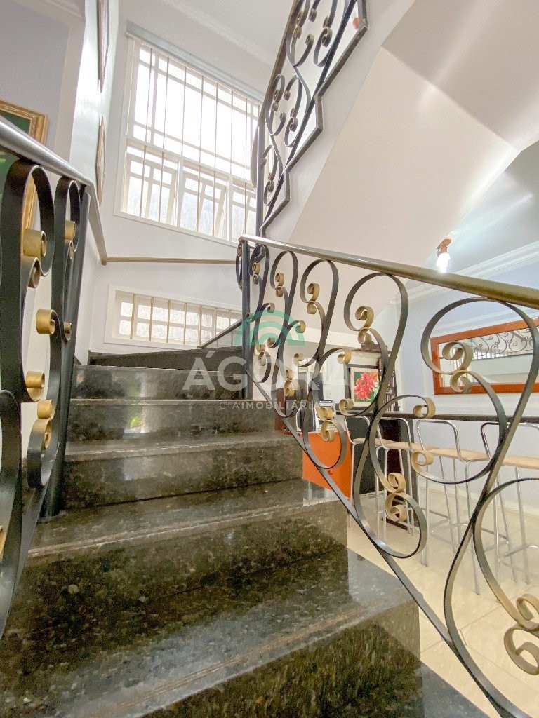 piso inferior com 2(duas) suítes sendo 1(uma) master, jardim de inverno, escritório, lavabo, salas de jantar com churrasqueira, sala de estar com lareira, sanca em gesso, piso porcelanato, depósito embaixo da escada, cozinha mobiliada e fogão à lenha, área de serviço, garagem coberta para 4(quatro) veículos mais 4(quatro) veículos descobertos, escada em granito, aberturas em madeira itaúba. Piso superior com mezanino e sacada, 1(uma) suíte com sacada, 2(dois) dormitórios, banho social, piso frio. Amplo pátio com piscina, jardim arborizado, poço artesiano 70 m de profundidade, cerca elétrica, portão eletrônico