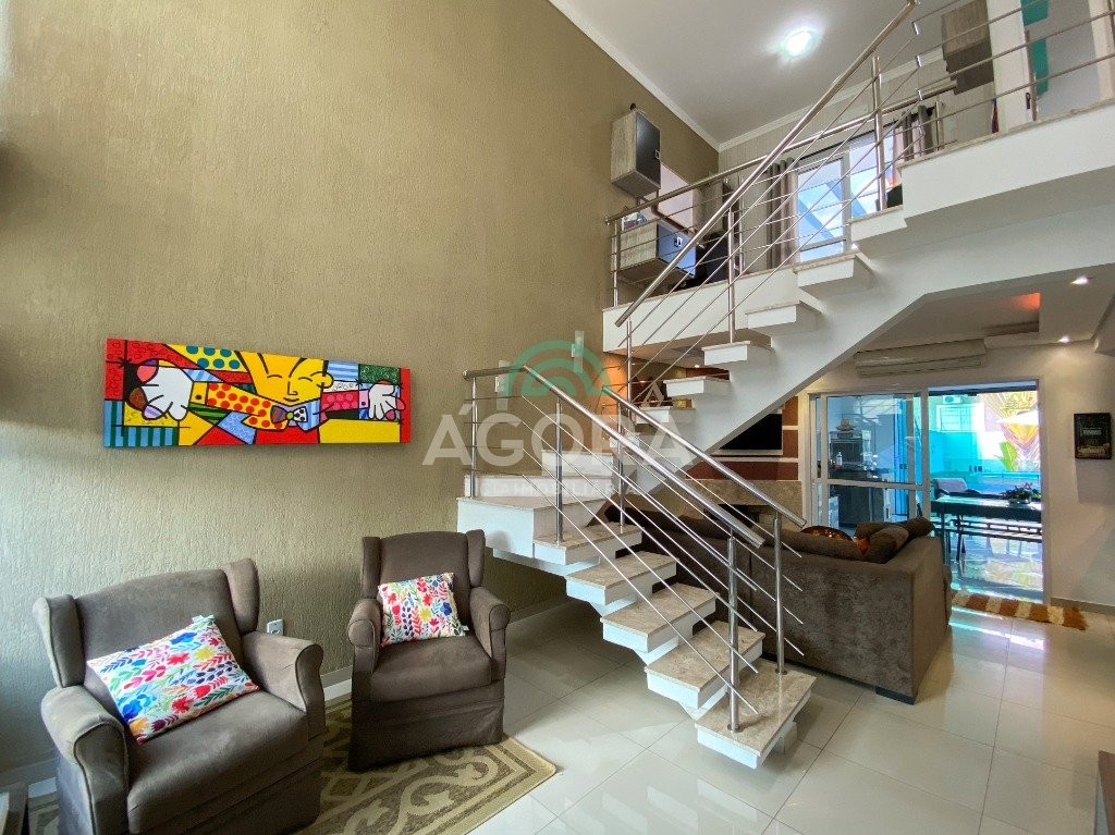 Ágora cia imobiliária vende excelente sobrado mobiliado, com pátio diferenciado! Possui 208 m² construídos, 03 (três) dormitórios, sendo 01 (um) suíte com closet e sacada. Sala de estar com pé direito duplo e lareira, cozinha integrada, living para 3 ambientes, lavabo, escritório, amplo terraço com acesso ao pátio, lavanderia, banheiro social, espaço gourmet com churrasqueira e fogão campeiro, 02 depósitos. Garagem para 6 carros, sendo 2 cobertos. Amplo pátio nos fundos, piscina grande (8 metros) com aquecimento, paisagismo, grama sintética. Possui acabamentos de qualidade, piso porcelanato e laminado, mármore, ambientes climatizados, água quente. Terreno diferenciado com 390 m². Localizado em bairro nobre, próximo ao parkshopping canoas. Aceita financiamento bancário, fgts e imóvel de menor valor.