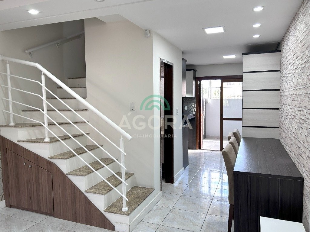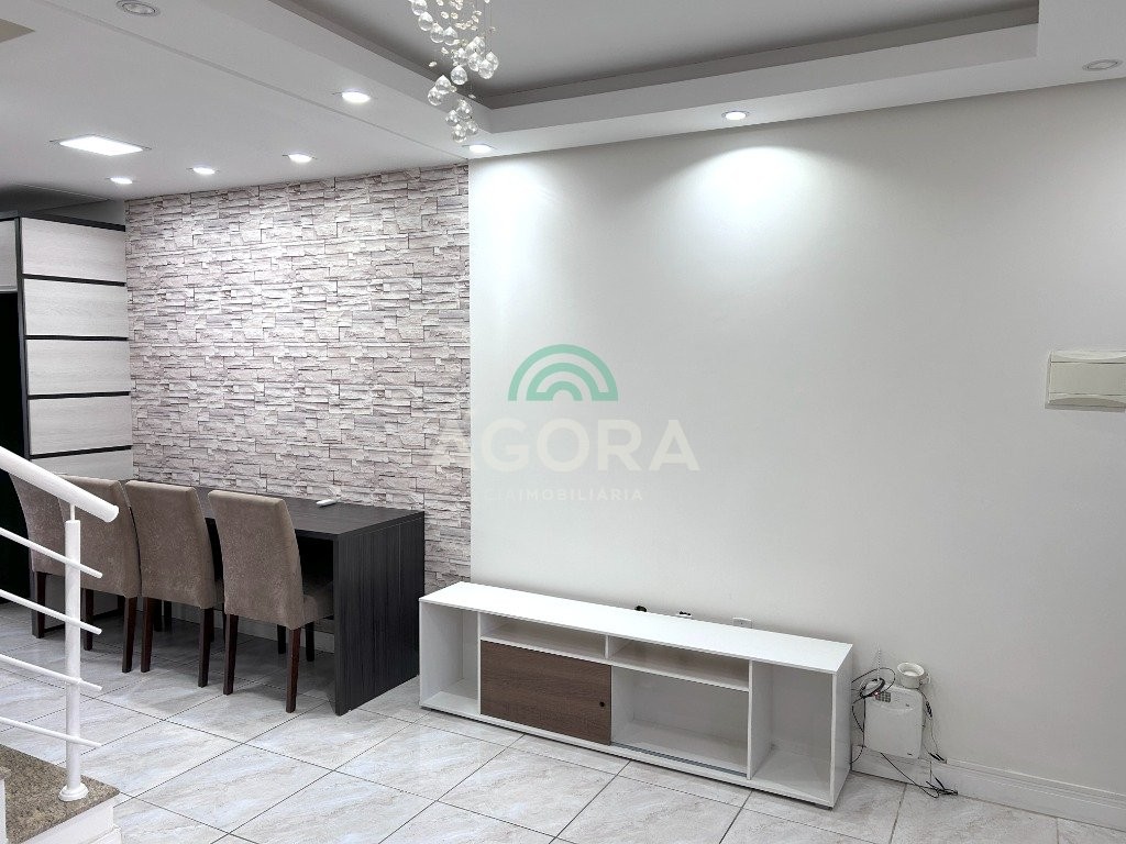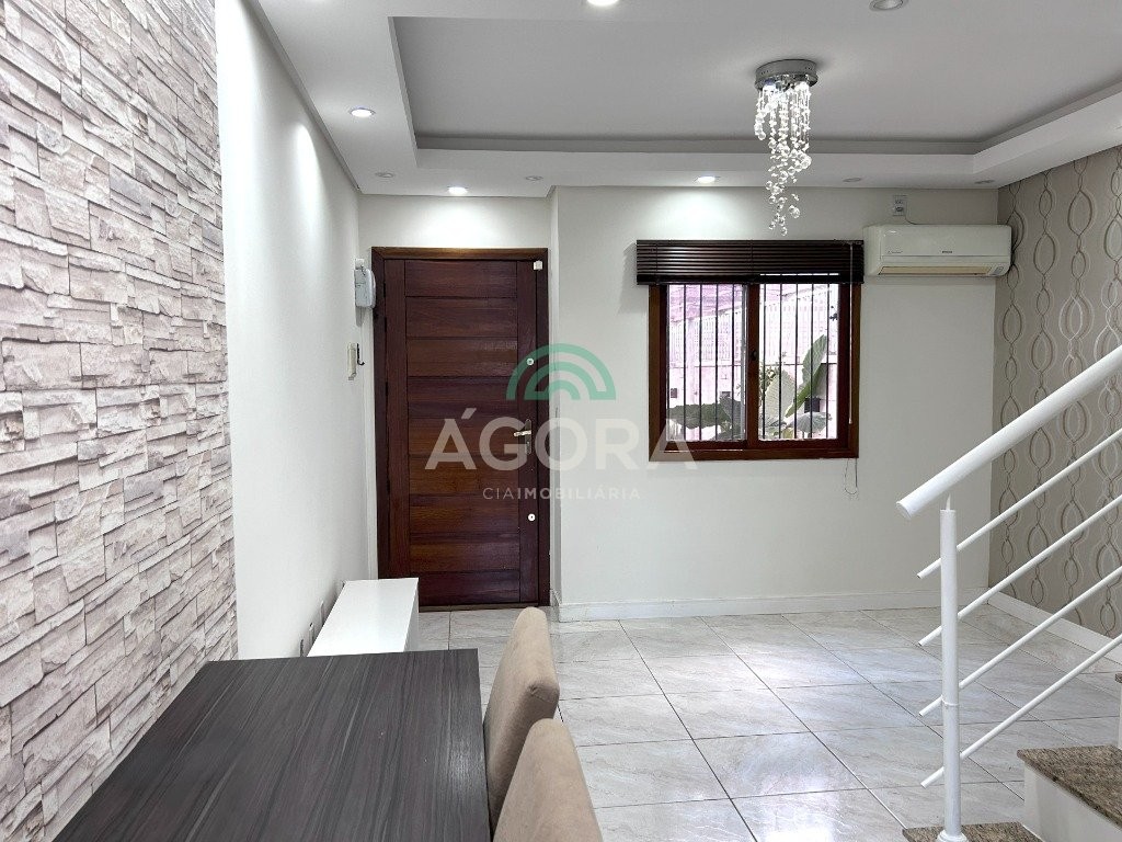 Sobrado semi-mobiliado com 64,41 m² privativos, 2 (dois) dormitórios, sala de estar e cozinha integrados, lavabo, split em todos os ambientes, espaço nos fundos com área de serviço e churrasqueira, piso em porcelanato na sala, cozinha e quartos, garagem coberta para 02(dois) veículos. Próximo a escolas, mercados, transporte público e fácil acesso a br.