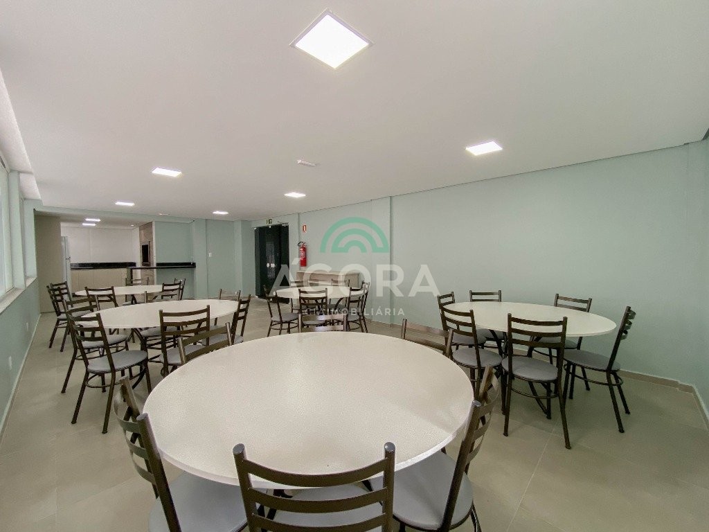 Ágora Cia Imobiliária vende: Apartamento novo, com 112,64 m² privativos; living para 2 (dois) ambientes amplo com sacada integrada com churrasqueira, cozinha separada; 3 (três) dormitórios, sendo 1 (uma) suíte. 2 vagas cobertas. Excelente padrão de acabamento, fechadura digital em todos os apartamentos, acústica entre aptos de qualidade. Cozinha com móveis sob medida Banheiros com móveis sob medida Área 116,54 m² Fechadura digital Água quente Espera para split Porcelanato Condomínio com salão de festas. Localização privilegiada por ter acesso a BR-116.