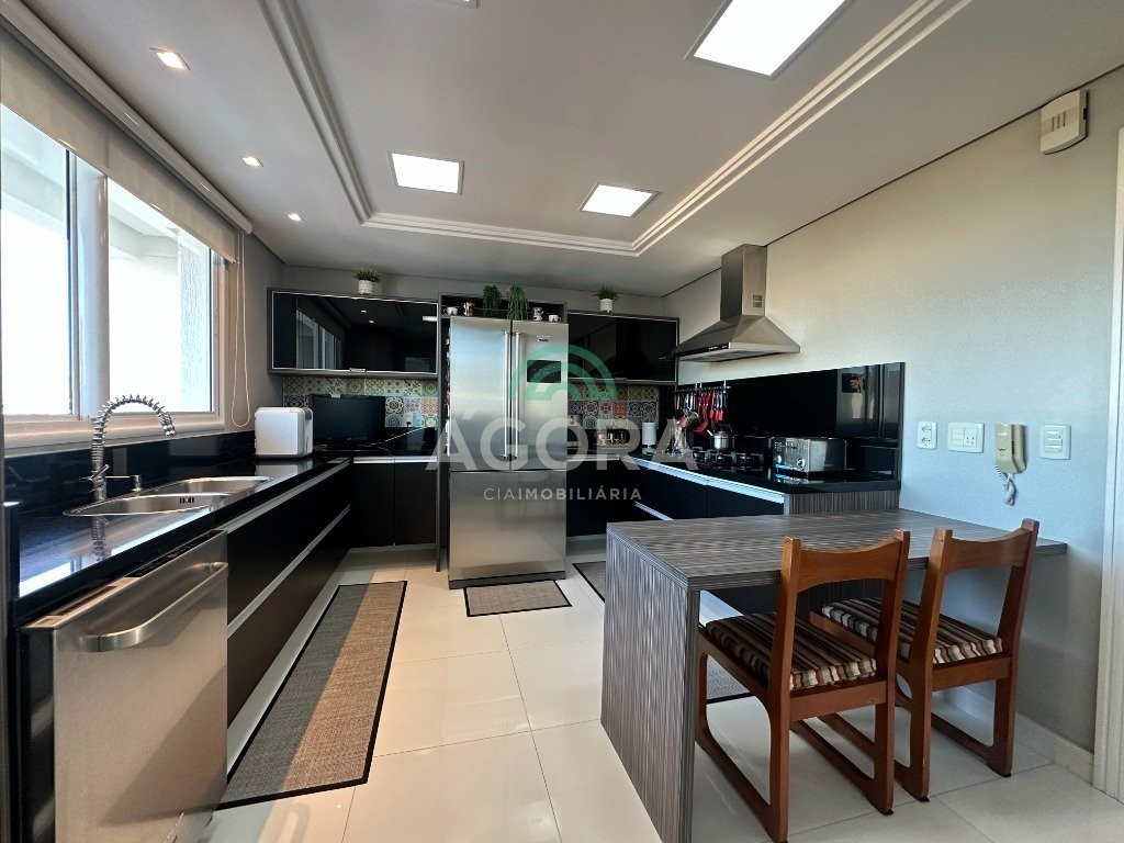 Ágora cia imobiliária vende apartamento de alto padrão, com 156,60 mt² privativos, com 3(três) dormitórios, sendo 1(uma) suíte e closet , sala de jantar e estar integrado, cozinha mobiliada, espaço gourmet com churrasqueira rotativa e espetos em inox. Ficam todos os móveis planejados e mais a mesa italiana. Piso laminado importado, sistema de portas com 2(duas) travas. Iluminação nova, ar condicionado em todos os dormitórios e ar central. Localização privilegiada, próximo ao canoas shopping.