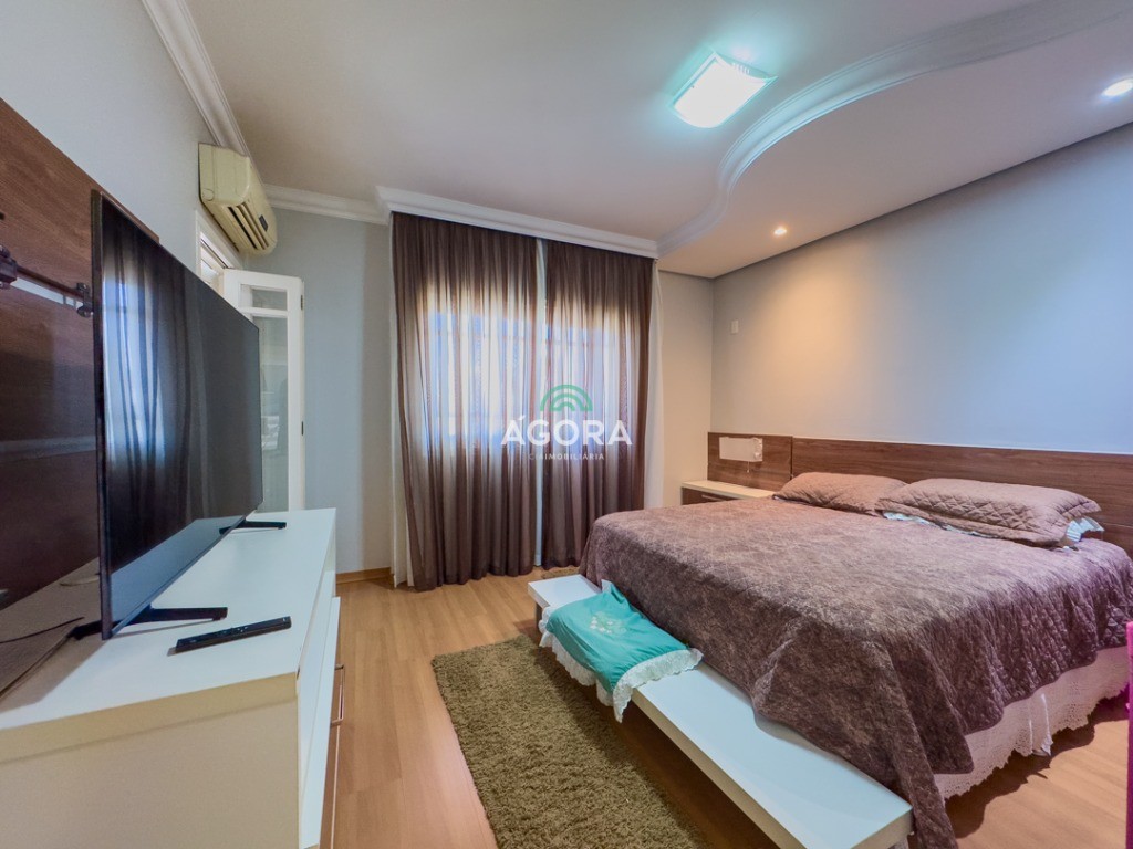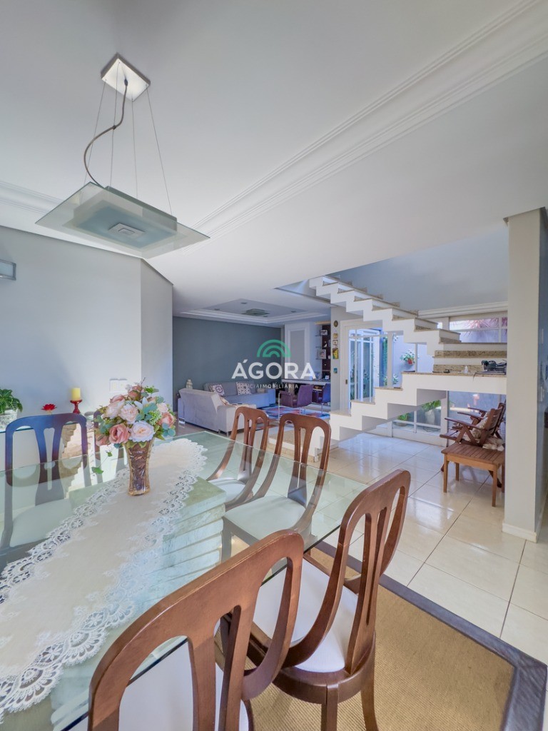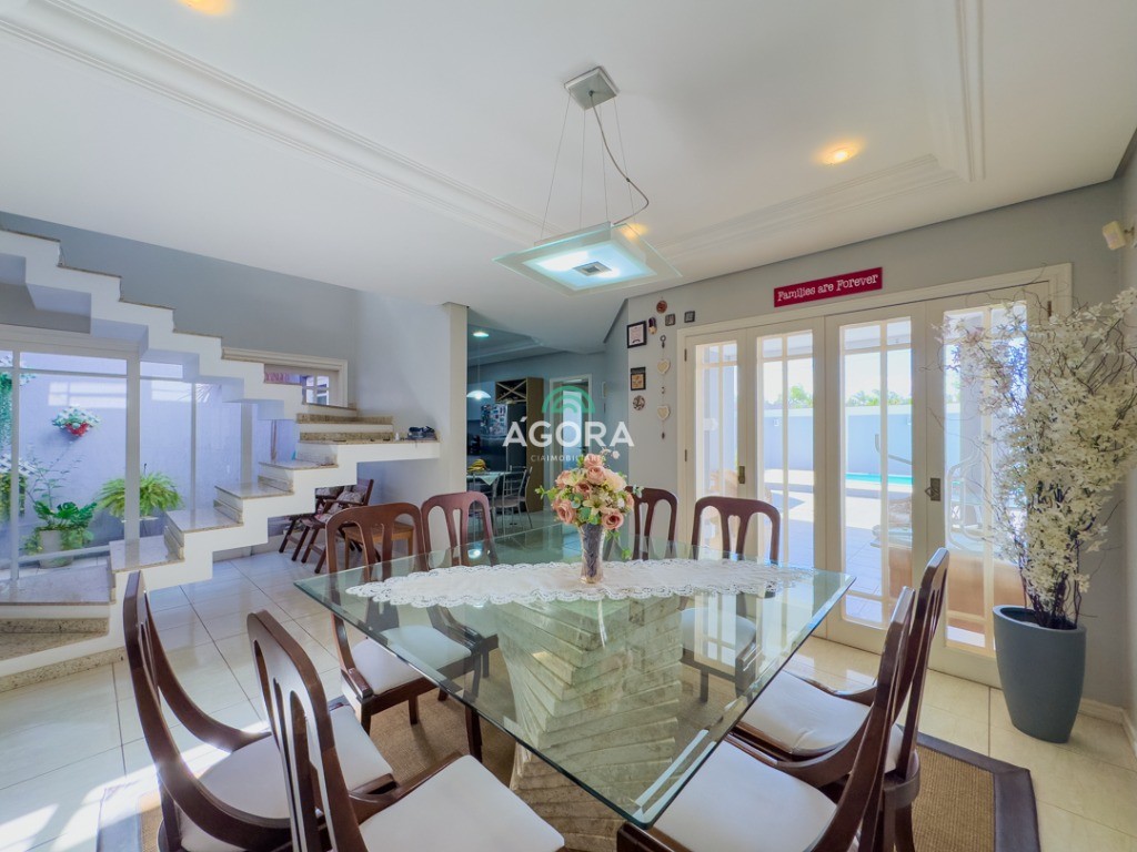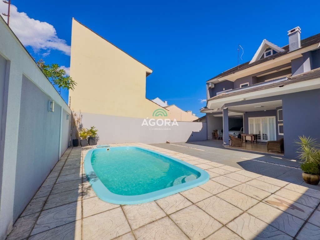 Sobrado de alto padrão com 308,88 m2, 04 (quatro) dormitórios, sendo 1(uma) suíte master com terraço, e 2(duas) suítes americana com terraço, sala de estar e jantar, lavabo, pátio nos fundos com piscina, garagem para 4(quatro) carros, cozinha, área de serviço e churrasqueira.