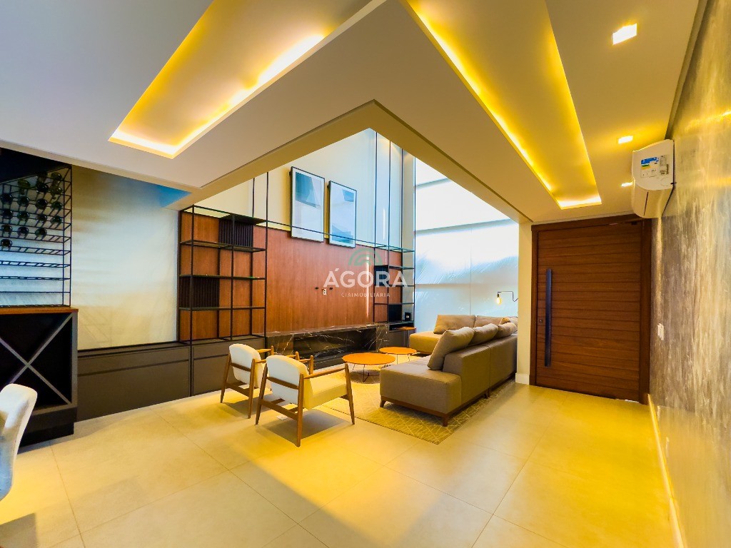 Excelente casa com 3 (três) amplas suítes no bairro moinhos de vento em Canoas. Moinhos de Vento - RS COD.: 14899 R$ 2.520.000,00 Descrição Excelente casa mobiliada de 260m², com pé direito duplo, composta por: 3 Suítes, sendo uma máster com sacada, banheira e closet; Banheiro social e lavabo; Living totalmente integrado com lareira; Mezanino; Área de serviço; Espaço gourmet completo; 2 Vagas de garagem lado a lado cobertas e 2 descobertas. Localizada próxima ao Park Shopping Canoas, este imóvel é diferenciado e possui excelente acabamento. Entre as características, destacam-se: Piso em porcelanato Portinari 100 x 100 e laminado; Tetos com gesso rebaixado; Abertura em PVC preto; Pátio aos fundos com piscina aquecida integrada com a área gourmet; Placa fotovoltaica; Paisagismo. Características Tipo Sobrado Área 280 m² Quartos 3 Banheiros 4 Garagem 4 Especificações Banheiro Auxiliar Churrasqueira Copa Cozinha Cozinha Dependenciade Empregada Despensa Gabinete Gradeado Lareira Lavabo Mobiliado Piscina Sacada Sala Jantar Split