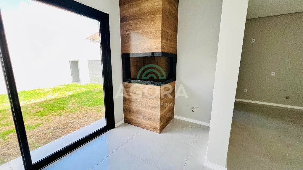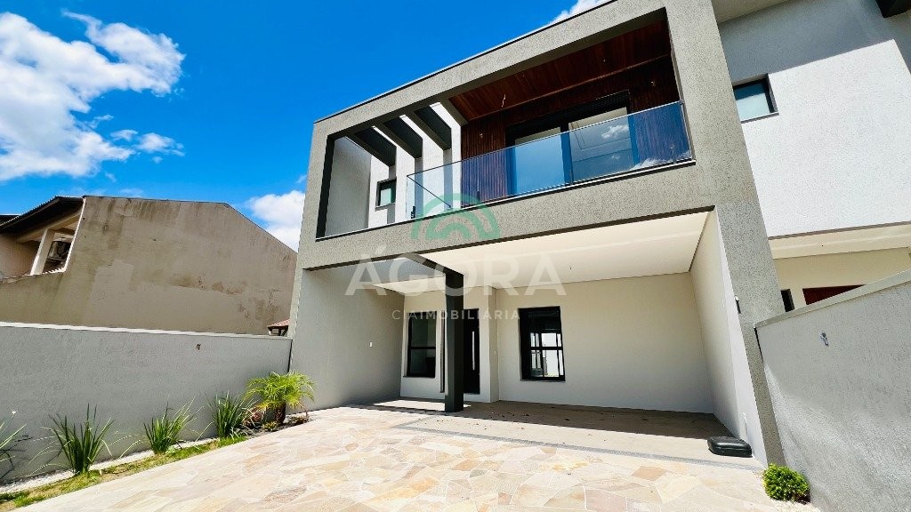 Sobrado moderno com 194,36m² privativos, 4 (quatro) dormitórios sendo 2 (duas) suítes, closet, living integrado, sala de estar com lareira, cozinha com espera para ilha, área de serviço, espaço gourmet com churrasqueira, amplo pátio nos fundos, vaga coberta para 2 carros mais 2 descobertas.