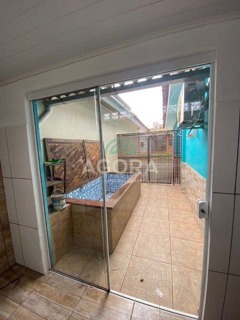 Casa térrea com 2 (dois) dormitórios em condomínio fechado. Condomínio possui apenas 10 (dez) unidades. Imóvel possui sala de estar, lareira, sala de jantar integrada com a cozinha campeira, banheiro, área de serviço, pequena piscina estilo jacuzzi, garagem para 2 (dois) veículos, jardim, portão eletrônico. Localizada no bairro harmonia.