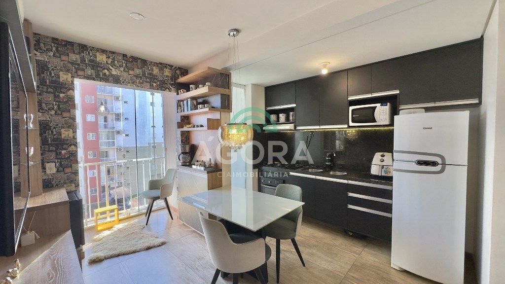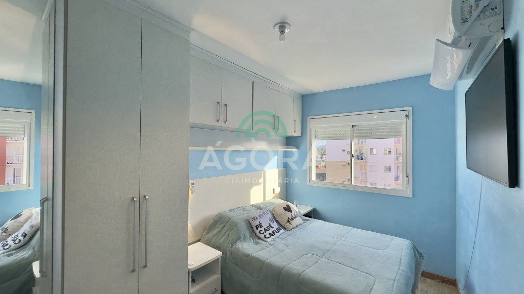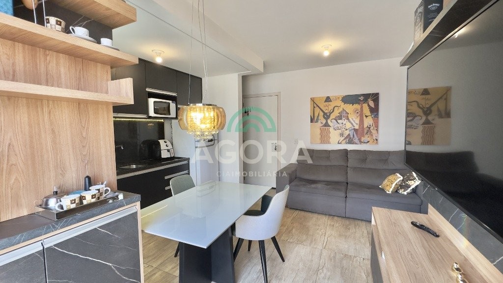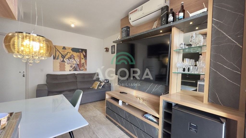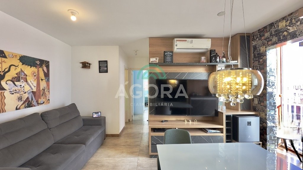 Àgora Cia Imobiliária vende um apartamento mobiliado no bairro Fátima, em Canoas. O imóvel é bem arejado e ventilado, contando com: