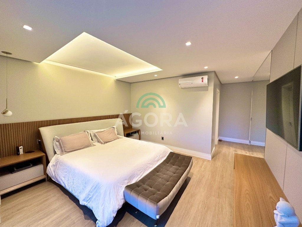 Casa em Condomínio fechado 337m² com 4 (quatro) dormitórios, no bairro Nossa Senhora das Graças. Nossa Senhora Das Graças - RS COD.: 15069 R$ 3.480.000,00 Descrição Esta encantadora casa em condomínio fechado possui 337m² em um terreno de esquina e dispõe de: 4 dormitórios, sendo 3 suítes, incluindo uma suíte master com banheira, chuveiro e cubas duplas. Living com 4 ambientes totalmente integrados, com cozinha planejada e ilha. Pé direito alto que proporciona uma sensação de amplitude. Piscina com espera para aquecimento, integrada ao living de convivência. Vagas para 4 carros. Jardim com iluminação e irrigação automatizada. Excelente posição solar, voltada para a frente norte. Energia fotovoltaica e sistema de cisterna. Um imóvel que combina conforto, modernidade e sustentabilidade. Características Tipo Sobrado em Condomínio Área 337 m² Quartos 4 Banheiros 4 Garagem 4 Especificações Banheiro Auxiliar Churrasqueira Cozinha Cozinha Montada Deck Despensa Lareira Lavabo Living Hall Piscina Reformado Sacada Sala Jantar Semi Mobiliado W C Empregada