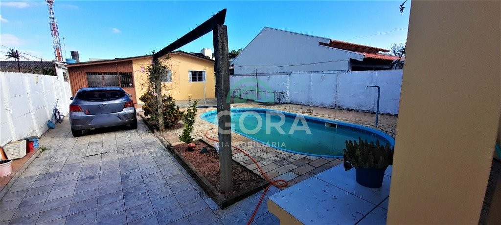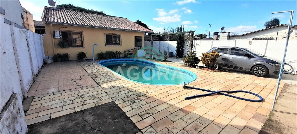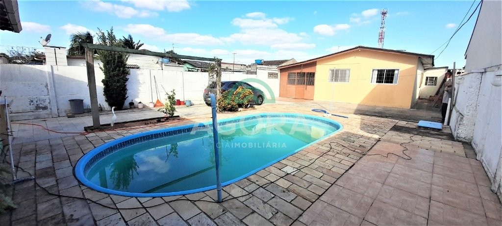 Terreno com 2 (duas) casas. Frente: casa com 119,46m² privativos com sótão, 03 (três) dormitórios, sala estar ampla, cozinha com móveis planejados, banheiro social. Fundos: casa com 96,01m2 privativos, 03 (três) dormitórios, espaço para fazer banheiro para ficar suíte, cozinha integrada área gourmet, garagem fechada 1 carro, área de serviço. Piscina no terreno. Localizado próximo a estação do trem niterói, farmácias, escola, loterica, lojas em geral, a uma quadra da julio de castilhos. Fácil acesso a br 116.