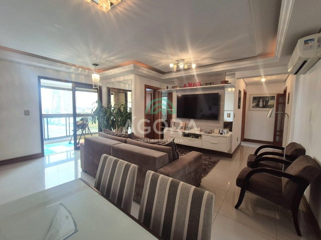 Apartamento com 4 (quatro) dormitórios, sendo 1 (uma) suíte, localizado no bairro Centro. Centro - RS COD.: 17330 R$ 999.000,00 Descrição Este incrível apartamento conta com: 4 (quatro) dormitórios, sendo 1 (uma) suíte Living integrado para estar e jantar Sacada gourmet frontal Cozinha independente Lavanderia fechada 2 (duas) vagas de garagem coberta O imóvel é semi-mobiliado e está localizado em um condomínio que oferece: Espaço gourmet Sala fitness Zeladoria Portaria digital monitorada Além disso, aceitamos FGTS e financiamento como formas de pagamento. Entre em contato e não perca essa oportunidade! Características Tipo Apartamento Área 146.69 m² Quartos 4 Banheiros 3 Garagem 2 Especificações Churrasqueira Cozinha Sala Jantar Semi Mobiliado