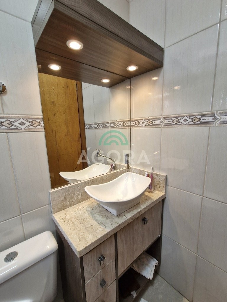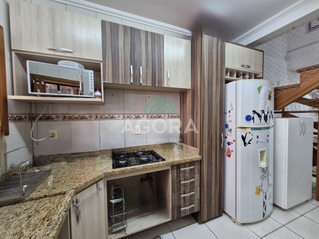 Sobrado com 2 (dois) dormitórios, localizado no bairro Igara em Canoas. Igara - RS COD.: 17385 R$ 429.000,00 Descrição Ágora Cia Imobiliária vende sobrado com as seguintes características: Dormitórios: 2 (dois), sendo 1 (uma) suíte. Ambientes: Sala de estar e jantar integradas, cozinha, área de serviço e banheiro. Pátio: Na frente para 2 (dois) carros cobertos, e nos fundos com 50% coberto e churrasqueira. Piso: Frio em toda a casa. Recursos: Pressurizador de água; móveis sob medida no quarto do casal e na cozinha; painel na sala; split quente/frio nos dois quartos. Características Tipo Sobrado Área 75.6 m² Quartos 2 Banheiros 2 Garagem 2 Especificações Churrasqueira Cozinha Montada Lavabo Sacada Split