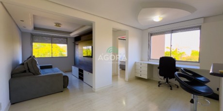 Ágora cia Imobiliária aluga: Apartamento semi mobiliado, com 02 (dois) dormitórios sendo 01 (um) suíte, sala de jantar e estar, todo com piso porcelanato. ,banheiro social , cozinha com balcão, churrasqueira, área de serviço, possui 01 (uma) vaga descoberta. Aluguel mais encargos. Condomínio novo possui: Espaço gourmet e academia na cobertura de cada torre, salão de festas para adultos no térreo das torres, brinquedotecas, salões de festas temáticos, sala de pilates, pergolados com chimarródromo, piscina adulto e infantil, 3 portarias, segurança 24h. Localizado na região mais valorizada de Canoas, ao lado do Park Shopping Canoas e da Revitalização do Capão do Corvo, agregando muita qualidade de vida e conforto ao moradores.