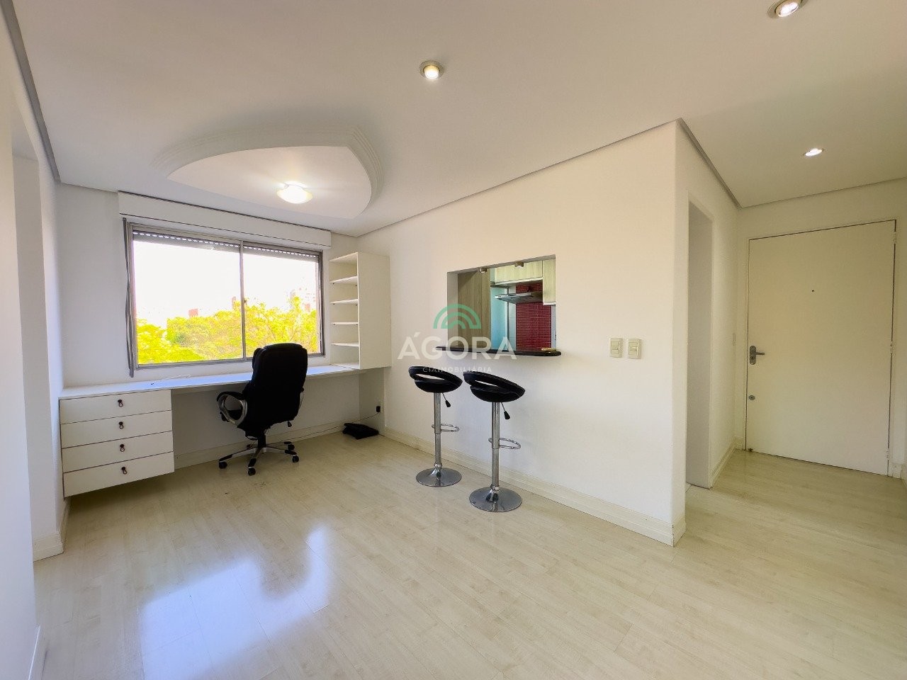 Ágora cia imobiliária aluga: excelente apartamento mobiliado, muito bem localizado no centro de canoas com 55m², 1(um) dormitório, sala e varanda com escritório, cozinha com área de serviço. Condomínio com infraestrutura completa, salão de festas, piscina, playground, quiosque, quadra de esportes e portária 24hs. Conta ainda com 1(uma) vaga da garagem.