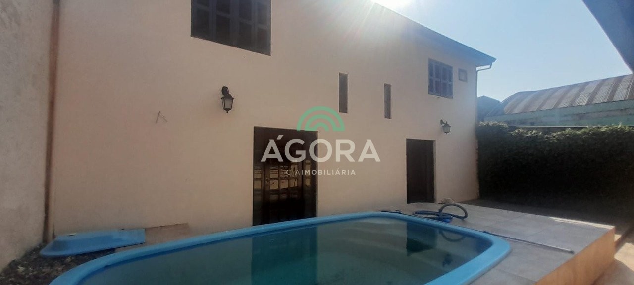 Ágora Cia Imobiliária Aluga: Excelente sobrado com piscina, amplo e muito bem distribuído. No andar térreo, possui duas salas (uma delas pode ser utilizada como dormitório), banheiro social, cozinha e ampla área de serviço interna. No segundo andar, dispõe de sala de estar com sacada, três dormitórios, sendo dois com ar-condicionado e uma suíte master. Nos fundos do terreno, encontram-se dois sobrados geminados, cada um com dois dormitórios, dois banheiros, sala e cozinha ? ideal para receber familiares ou gerar renda extra. Conta ainda com piscina e excelente espaço externo para lazer. Aluguel mais encargos