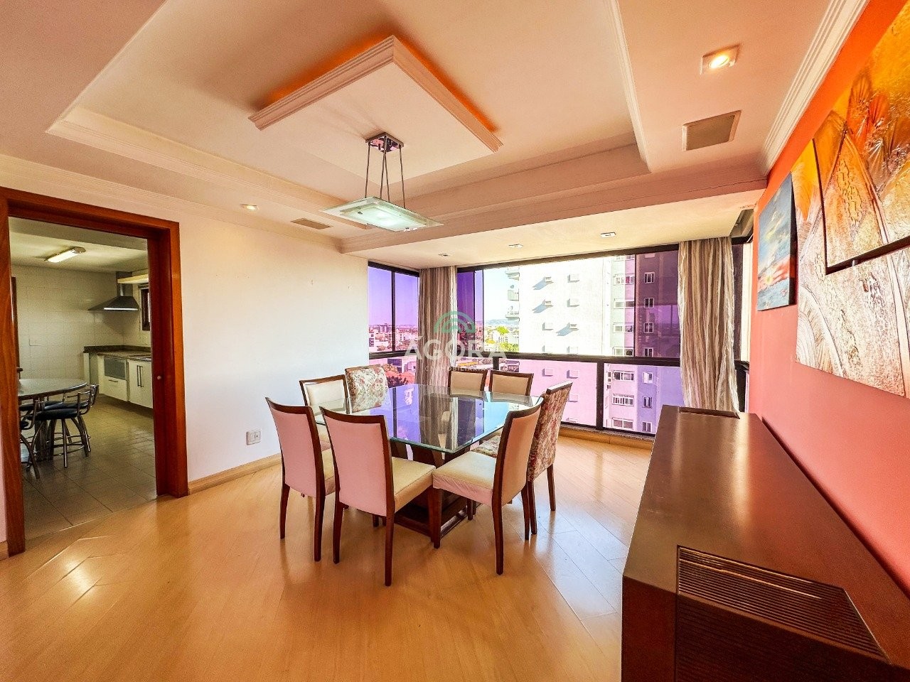 Ágora cia imobiliária aluga: apartamento com 156m² privativos, com vista 360° da cidade, composto por 3 (três) dormitórios amplos, todos mobiliados e com ar-condicionado, sendo 1 (uma) suíte master com closet e hidromassagem. O living integrado em 3 (três) ambientes conta com sala de estar e jantar climatizadas com ar-condicionado split, sacada fechada em vidro, lareira, home theater e cozinha espaçosa. O imóvel dispõe ainda de dependência de empregada, segunda cozinha com churrasqueira e sistema de água quente em todos os ambientes. Possui 2 (duas) vagas de garagem cobertas no subsolo. O condomínio conta com a exclusividade de apenas 1 (uma) unidade por andar, além de salão de festas, portaria e gás central. Localização privilegiada, próximo ao parkshopping canoas, com fácil acesso à br e a todas as conveniências do dia a dia. Observação: o gás possui rateio entre os moradores, gerando custo médio mensal de r$ 160 e água já inclusa no valor do condomínio. Aluguel mais encargos.
