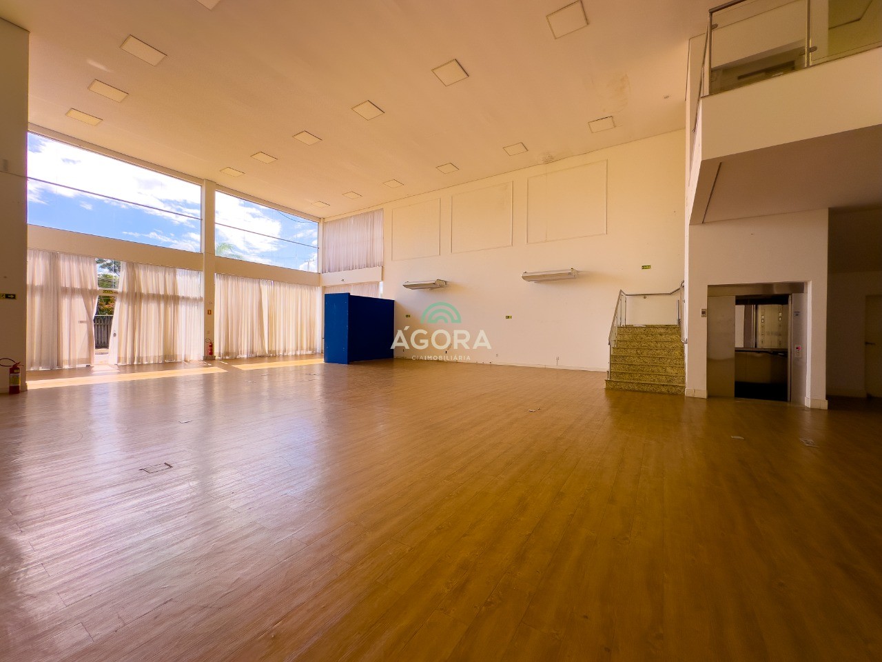 Ágora cia. Imobiliária aluga: excelente loja com 1. 400m², endereço estratégico, em uma área valorizada e cercada por serviços essenciais como shopping, mercados, farmácias e bancos, oferecendo praticidade e excelente acessibilidade. Amplo, moderno com testada de 16m, pé direito duplo de 7,20m e fachada com grades, painéis de vidro que permitem excelente iluminação natural e visibilidade para a rua. Forro em gesso, iluminação em led, estrutura metálica com telhas duplas em aluzinco de 5cm de eps, alarme de incêndio, central de iluminação, ppci aprovado, parte elétrica dentro dos padrões de segurança, imovel: com 05 banheiros, 01 salão térreo com 560m², 01 mezanino com 280m², 01 elevador otis com três paradas para, oito pessoas com capacidade ate 600 kg, escadas revestidas com pedras (granito), corrimão em aço inoxidável. Subsolo: com 560m², 20 vagas de estacionamento, com altura para veículos de carga. Área externa coberta nos fundos com 80m² valor mais encargos.