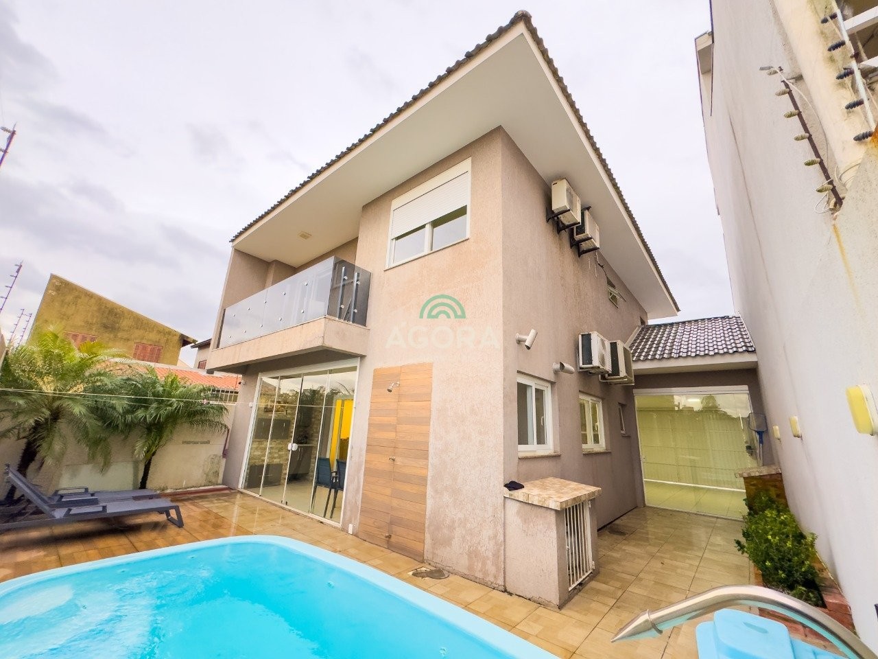 Ágora cia imobiliária aluga: sobrado de alto padrão no bairro igara - 222m² de puro conforto e sofisticação! , localizado em uma das regiões mais desejadas do bairro igara. Possi, 3 (três) amplas suítes, sendo 1 (uma) com closet e sacada frontal, e as demais com ótima luminosidade , garantindo privacidade e espaço para toda a família. Sala de estar com lareira, piso porcelanato e iluminação em led, perfeita para os dias mais aconchegantes. Ambiente integrado com cozinha planejada e sala de jantar, tendo a escada em granito como um elegante ponto de destaque. Espaço gourmet completo com churrasqueira, ideal para receber amigos e familiares. Piscina e amplo pátio, oferecendo o lazer que você merece sem sair de casa. Lavabo, área de serviço e 2 (duas) vagas cobertas. Acabamentos premium: gesso rebaixado, água quente em todos os pontos, ar condicionado split instalado, corrimão em inox, sistema de alarme e câmeras. Aluguel mais encargos