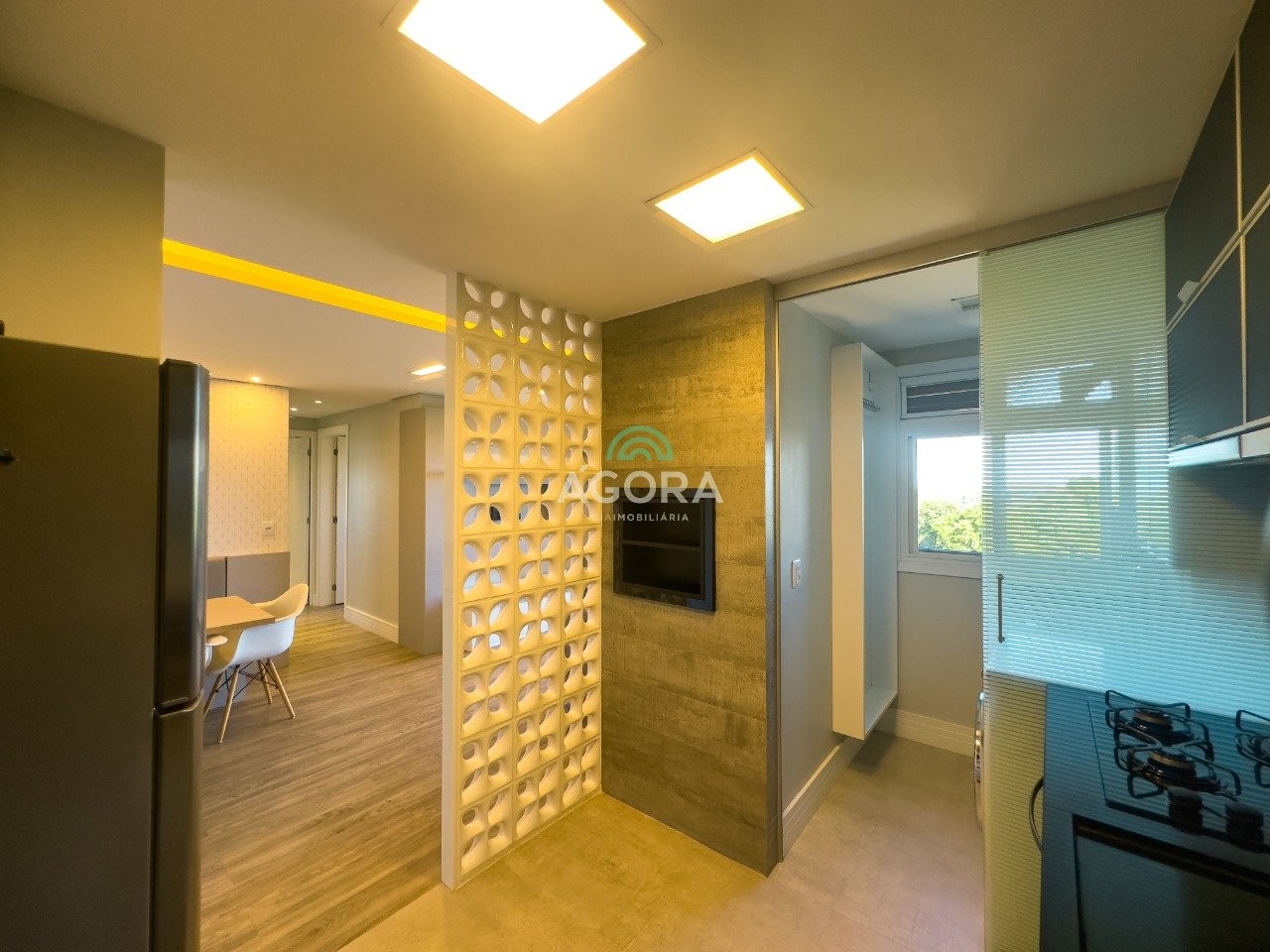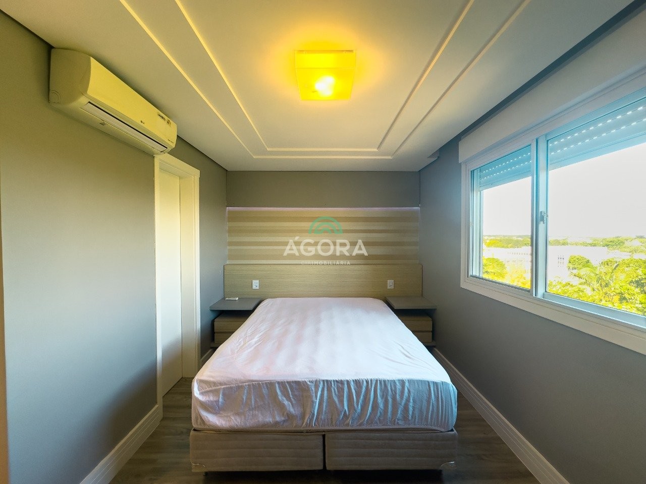 Ágora cia imobiliária aluga: apartamento mobiliado com 02 (dois) dormitórios, sendo 01 (uma) suíte com closet e ar-condicionado. Conta com sala de estar climatizada, sacada com ótima vista, cozinha planejada completa com churrasqueira, banheiro social completo com box, banheiro privativo, área de serviço, água quente e 02 (duas) vagas de garagem cobertas. O edifício dispõe de portaria 24 horas, elevadores, academia, piscina, salão de festas, churrasqueira, playground, brinquedoteca, gás encanado e elevadores social e de serviço? Pensados para atender às necessidades de lazer e conveniência dos moradores. Sua localização em um entorno arborizado, com fácil acesso a escolas, comércio e serviços, reforça o perfil de qualidade de vida que o condomínio proporciona. Aluguel mais encargos.