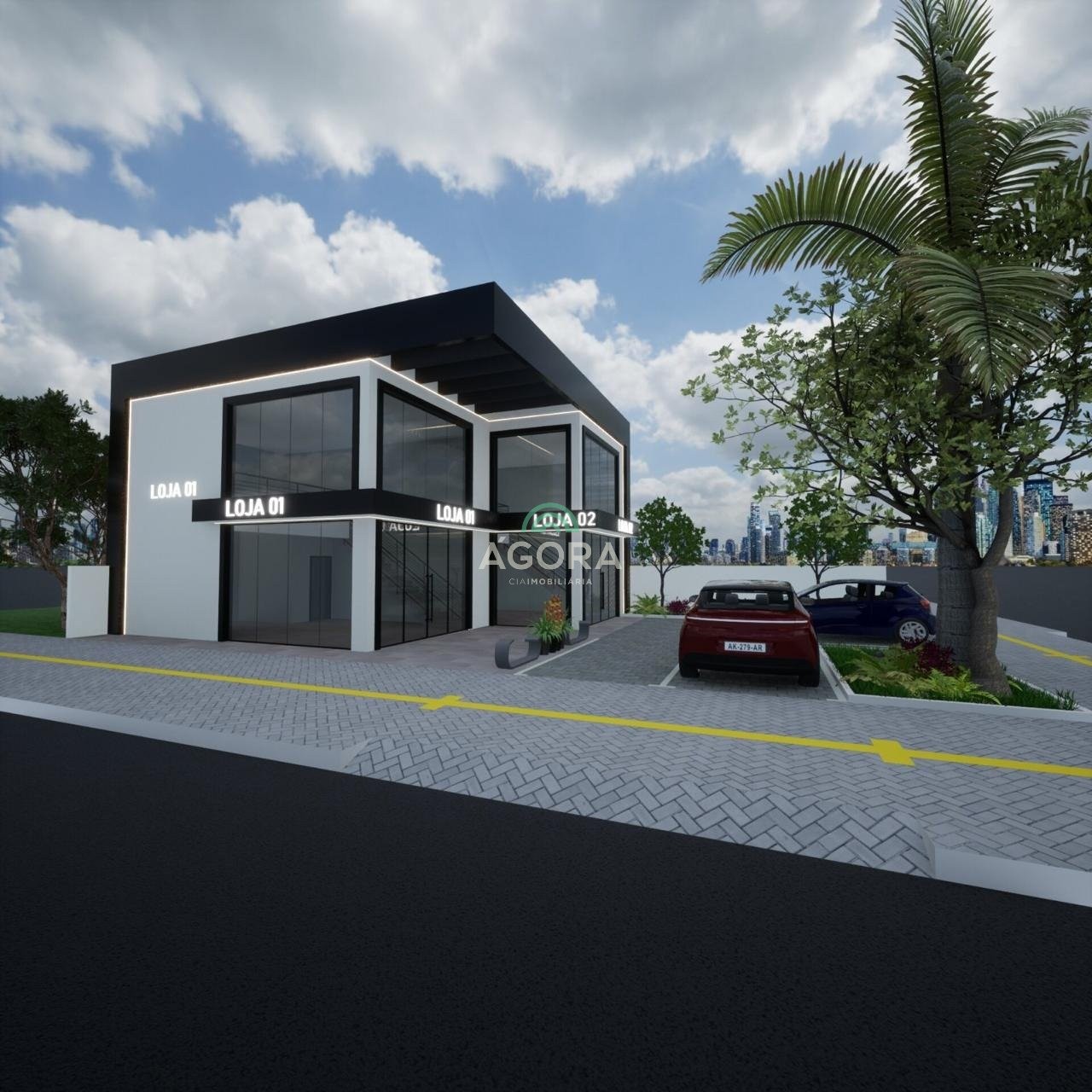 Ágora cia imobiliária aluga: loja comercial com 68,56m² de área total, sendo 48,56m² no térreo e 20,00m² de mezanino. Localizada em ponto de esquina, possui ampla fachada com duas frentes, oferecendo excelente visibilidade e grande potencial para vitrines e identidade visual. O pavimento térreo conta com banheiro adaptado para pcd, pé-direito de aproximadamente 3 metros e ambiente funcional para atendimento ao público. O mezanino, com pé-direito de cerca de 2,6 metros, é ideal para área administrativa, estoque ou apoio interno, com boa iluminação e ventilação natural pela fachada principal. Projeto moderno e funcional, com ótima presença de rua. Perfeita para comércio, serviços ou showroom em localização estratégica. Obs: a loja está em construção com previsão para abril/2026 ainda não temos o valor do iptu definido. Assim que estiver concluída, o valor será incluído. Aluguel mais encargos.