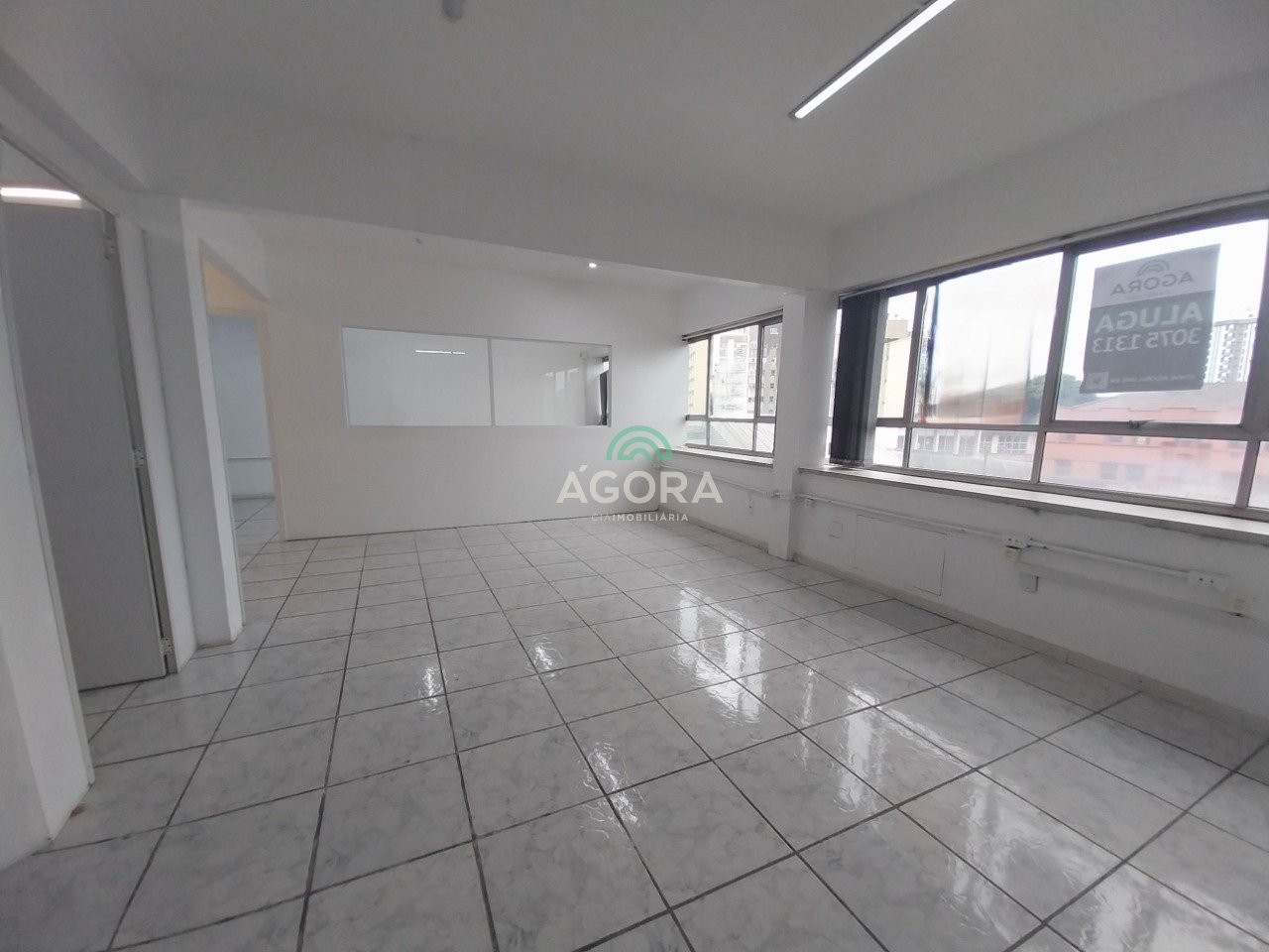 Ágora cia imobiliária aluga: sala comercial com 82m² privativos, já equipada com divisórias, cozinha com armários e banheiro social. A sala conta com cabeamento distribuído e esperas para ar-condicionado, oferecendo praticidade para diferentes tipos de atividade. O condomínio dispõe de entrada eletrônica e elevador, garantindo segurança, acessibilidade e comodidade para usuários e clientes. Aluguel mais encargos