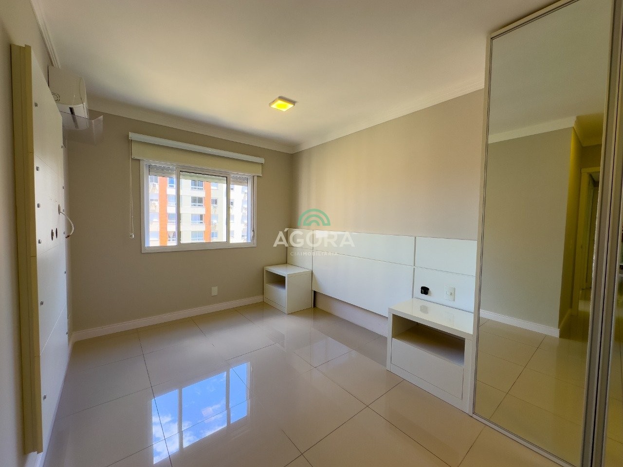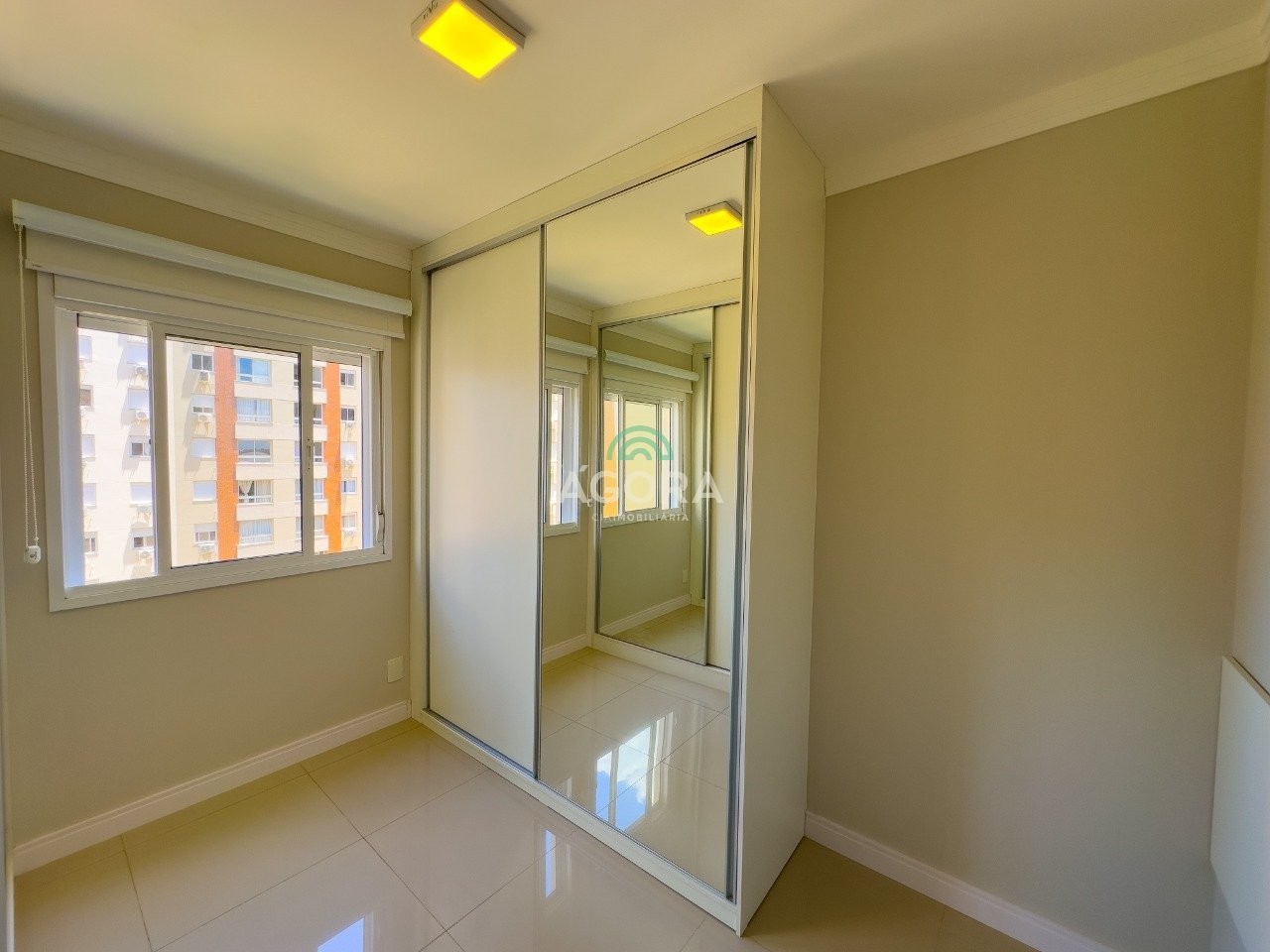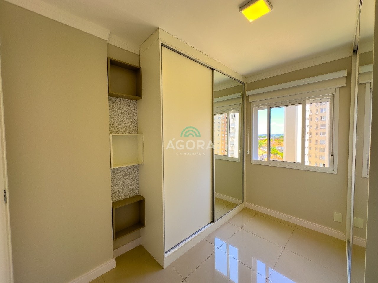 Apartamento com 76m² privativos, composto por 3 (três) dormitórios, sendo 1 (uma) suíte com closet, ar-condicionado split, cortina blackout e banheiro com chuveiro a gás. Os demais dormitórios contam com armários, cortinas blackout e espera para ar-condicionado split, sendo que um deles já possui split instalado. A sala de estar é aconchegante, com gesso rebaixado, cristaleira, painel de tv e armário para louças. A cozinha é equipada com móveis planejados, exaustor para fogão, forno, geladeira e churrasqueira, integrada de forma funcional ao ambiente. A área de serviço possui móveis sob medida e aquecimento de água a gás (junker). O imóvel dispõe ainda de banheiro social completo com chuveiro a gás, espera para ar-condicionado na sala e 2 (duas) vagas de garagem cobertas. Localizado em condomínio com infraestrutura completa, ao lado do park shopping canoas, oferecendo conforto, praticidade e excelente localização. Aluguel mais encargos.