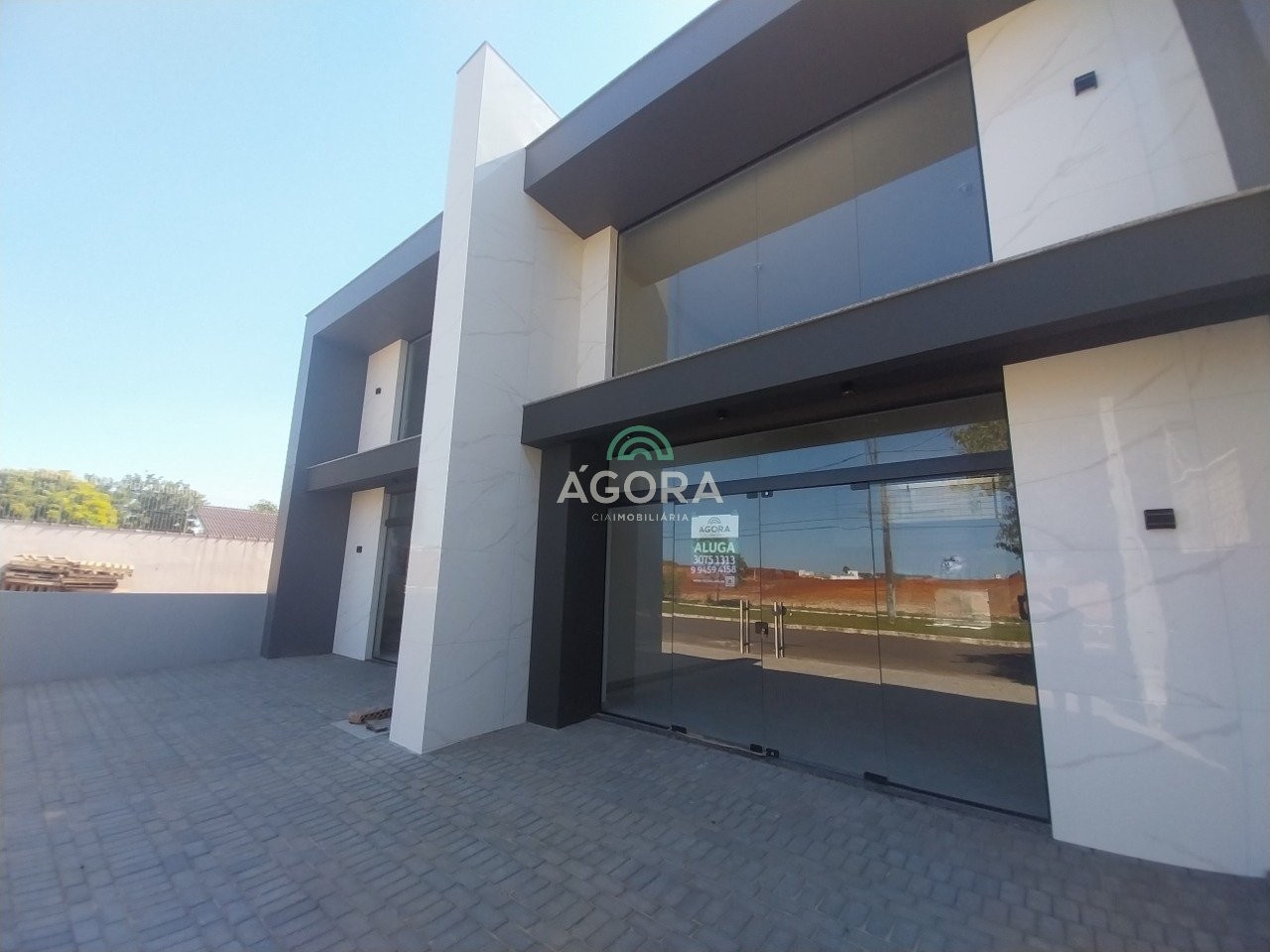 Loja sobreloja com 165m² e fachada imponente em vidro.