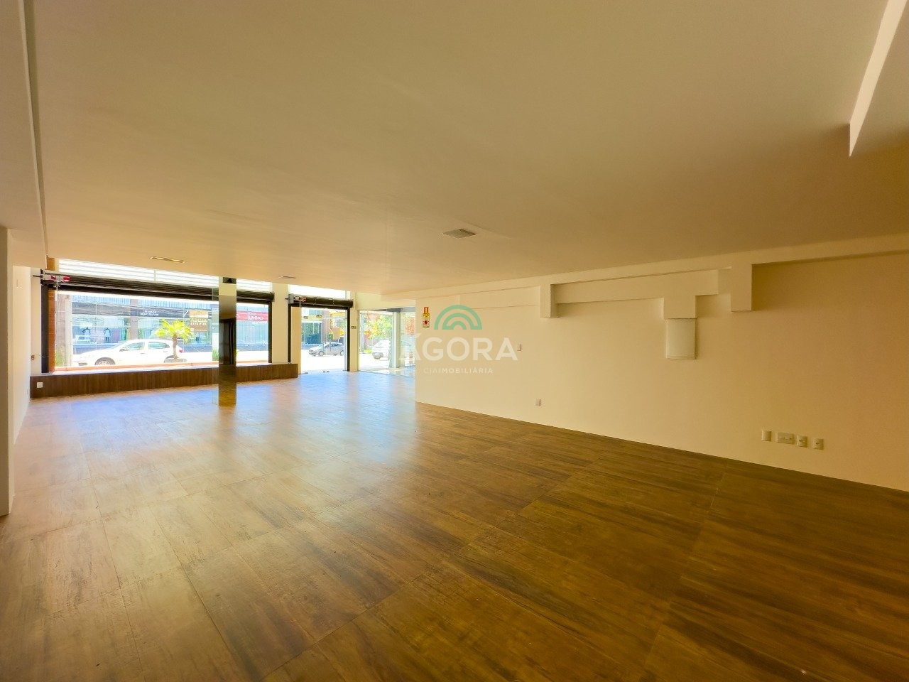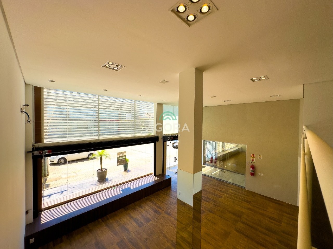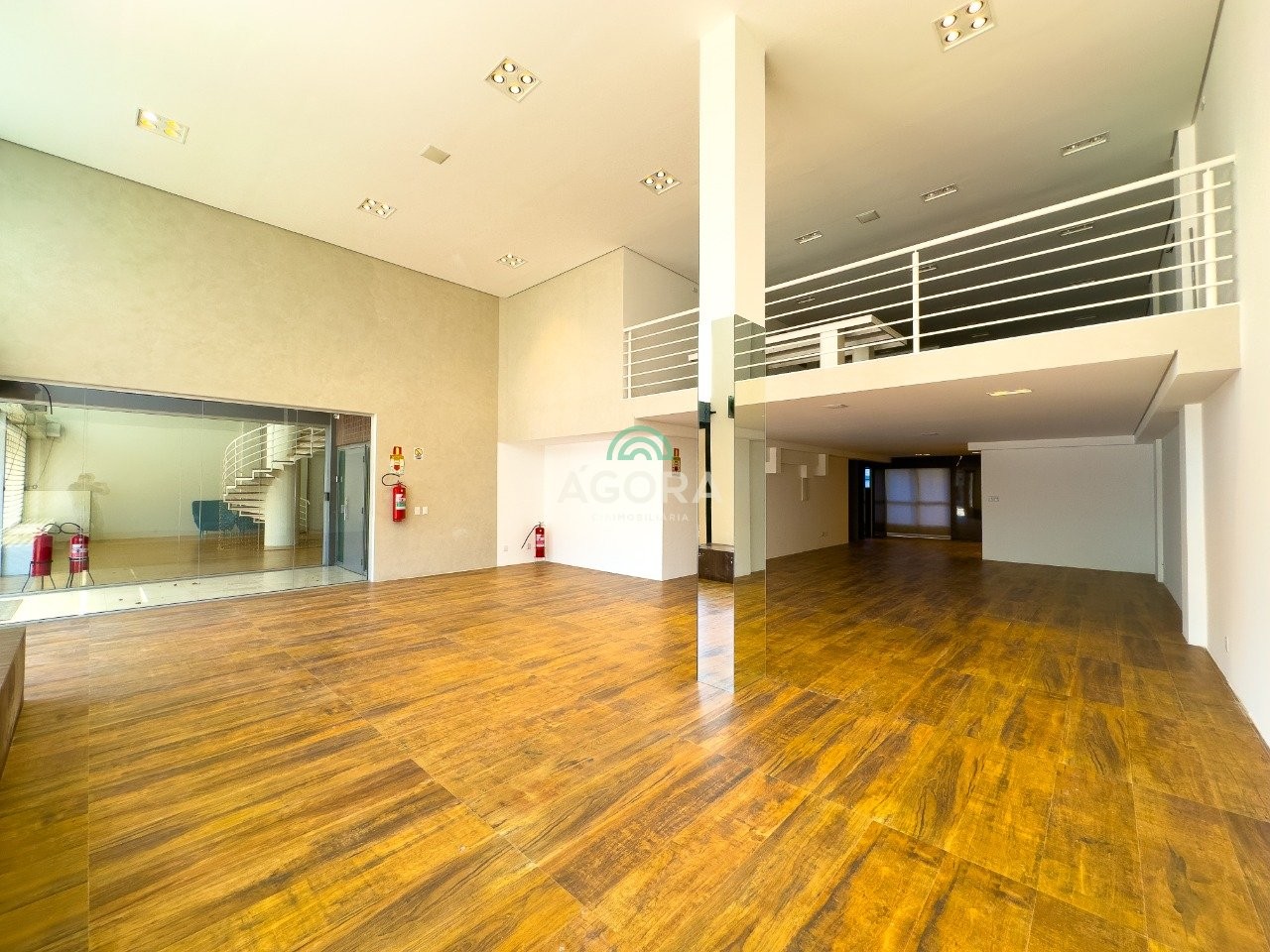 Loja sobreloja com 165m² e fachada imponente em vidro.