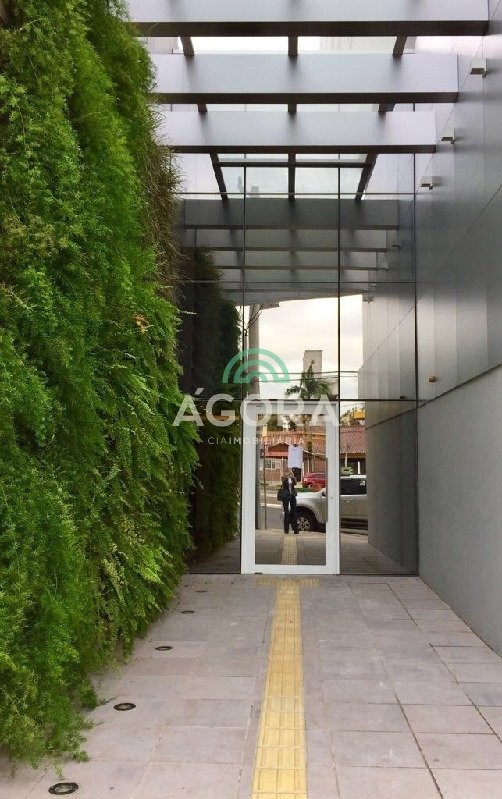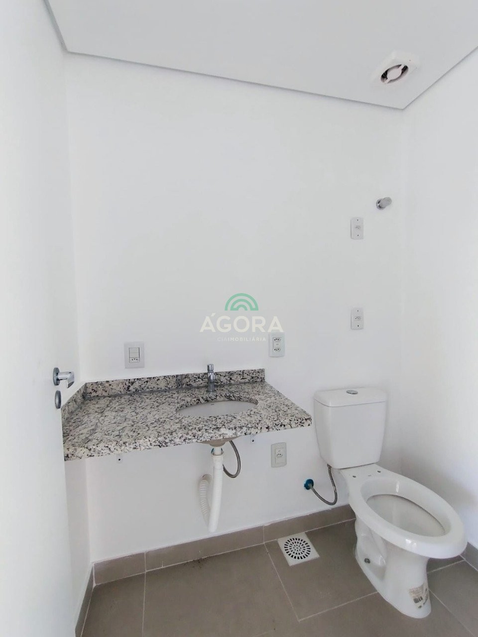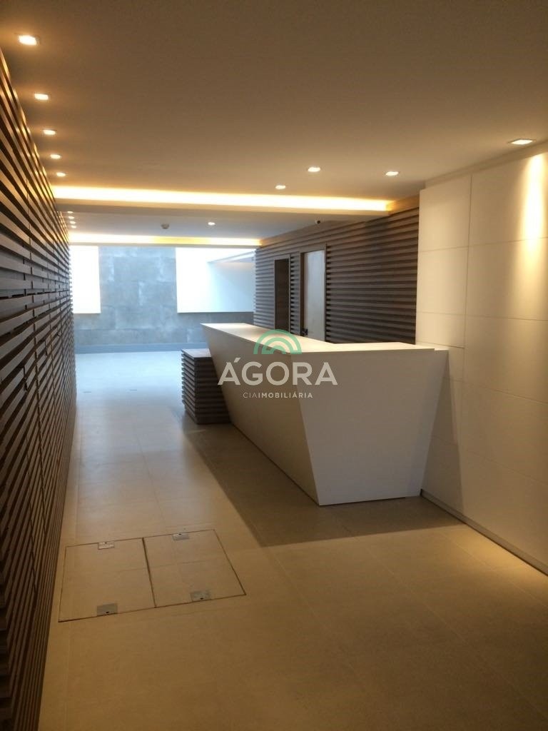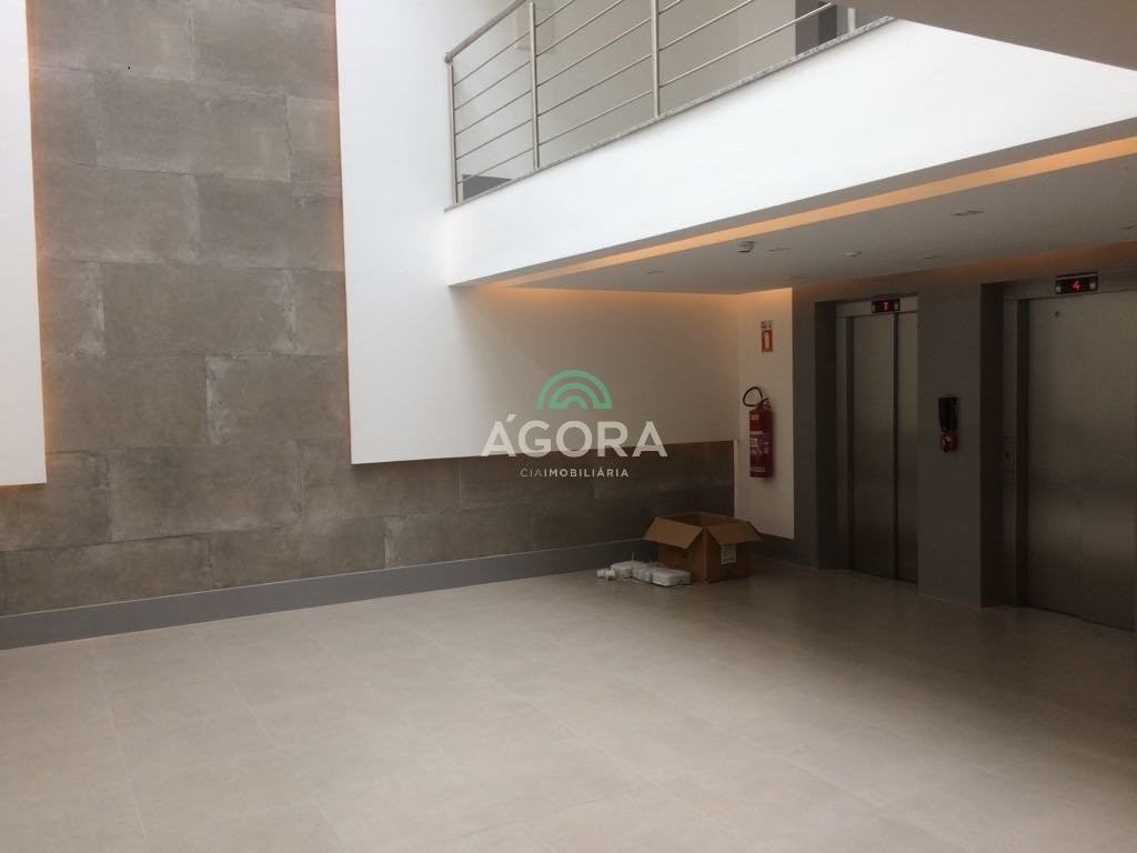 Sala comercial com 34,08m², 2 vagas de garagem, amplas janelas em pele de vidro, proporcionando excelente luminosidade e conforto térmico. Lavabo, piso em porcelanato, armário abaixo da janela, luminárias, molduras de embelezamento nas paredes. Prédio conta com portaria presencial durante horário comercial e remota fora do expediente, dois elevadores, cafeteria no térreo. Aluguel mais encargos