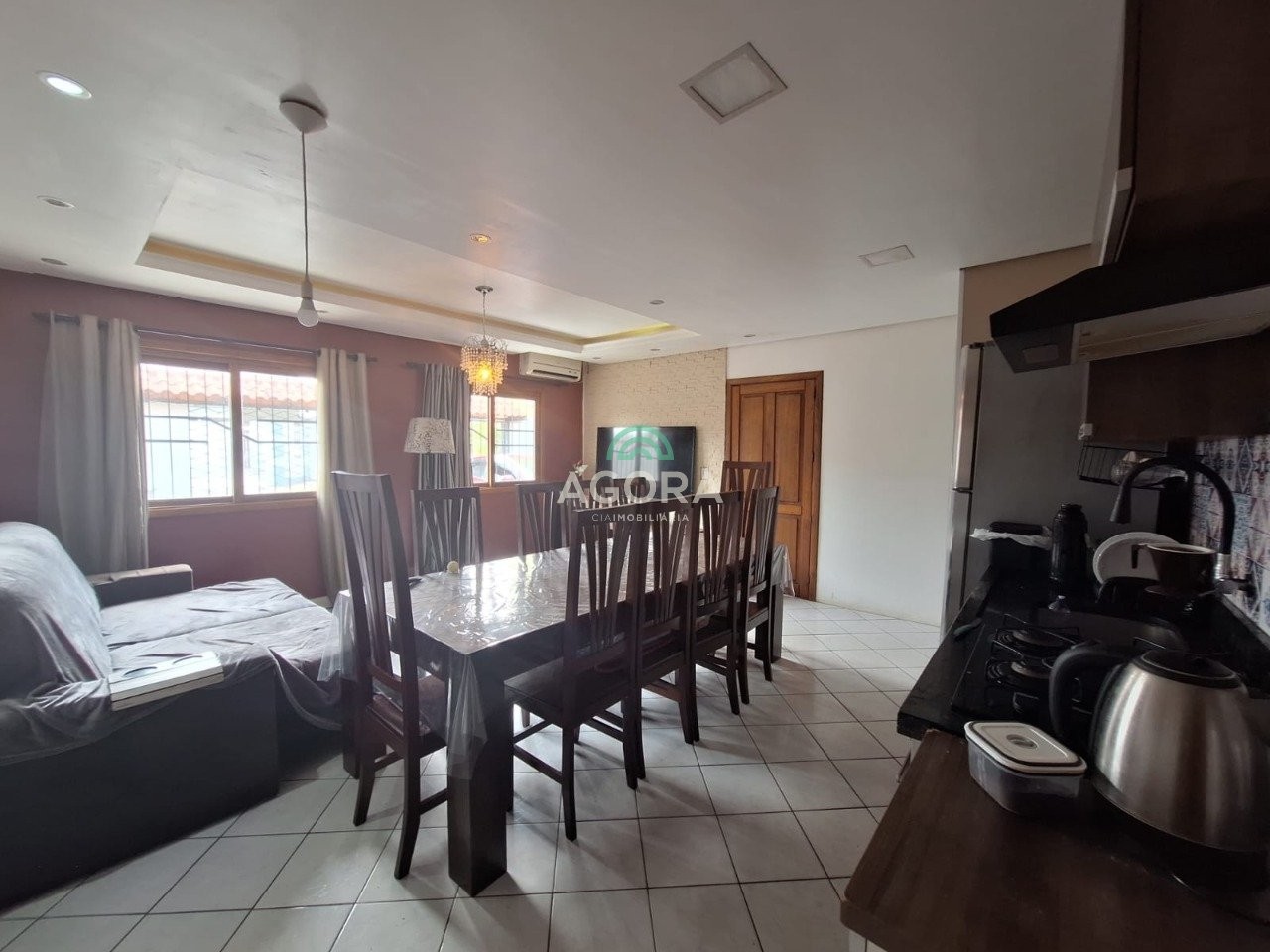 Ágora cia imobiliária aluga: casa com 3 dormitórios, sendo 1 suíte, 2 quartos com armários embutidos, banheiro social, sala de estar e jantar integradas à cozinha, que já conta com armários planejados, além de área de serviço, churrasqueira, pátio nos fundos e 2 vagas de garagem, sendo 1 coberta. Obs: mobilais que ficam no imóvel armários embutidos, sofá e cama. Aluguel mais encargos.