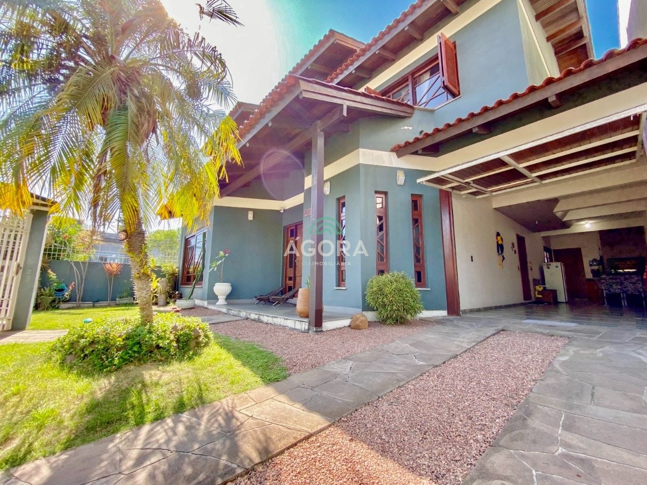 Ágora Cia Imobiliária aluga: Sobrado com 256m² de área construída, oferecendo conforto, sofisticação e excelente distribuição dos espaços. O imóvel dispõe de 04 (quatro) dormitórios, sendo 01 (uma) suíte máster com banheira de hidromassagem, closet e sacada. Possui amplo living integrado, com sala de estar e jantar com lareira, além de cozinha espaçosa e bem planejada. Conta ainda com sala de jogos, espaço gourmet com churrasqueira, pátio amplo nos fundos com piscina e deck, e garagem para até 03 (três) veículos. Apresenta acabamentos nobres, com rebaixos em gesso e sancas, piso em porcelanato e cerâmico, além de ambientes amplos, bem iluminados e arejados. Localização privilegiada em região nobre de Canoas, bairro valorizado, próximo ao ParkShopping Canoas, com fácil acesso a escolas, mercados, farmácias e comércio em geral. Obs: os móveis podem sofrer alteração, consulte. Aluguel mais encargos.