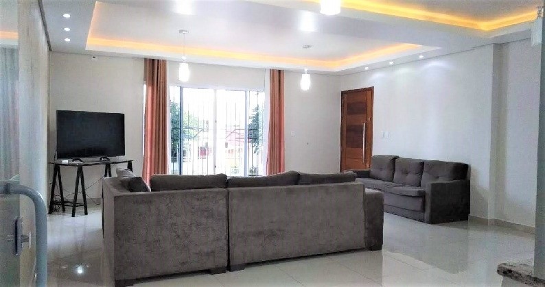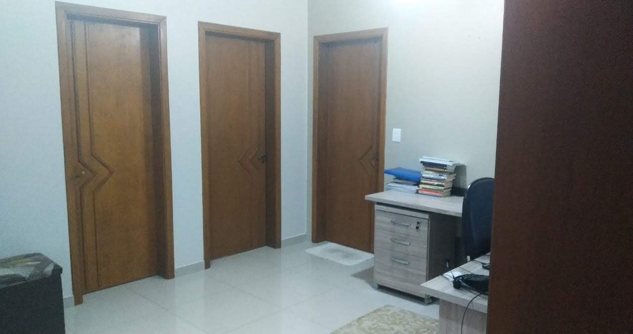 Casa residencial com 3 (três) dormitórios, sala de estar com sacada, gabinete, cozinha, varanda, banheiro social, banheiro privativo, banheiro auxiliar, área de serviço, garagem para 3 (três) carros, possui 3 (três) aparelhos de ar condicionado, portão eletrônico, grade nas aberturas, salão de festas com churrasqueira, possui pátio nos fundos. Aluguel mais encargos