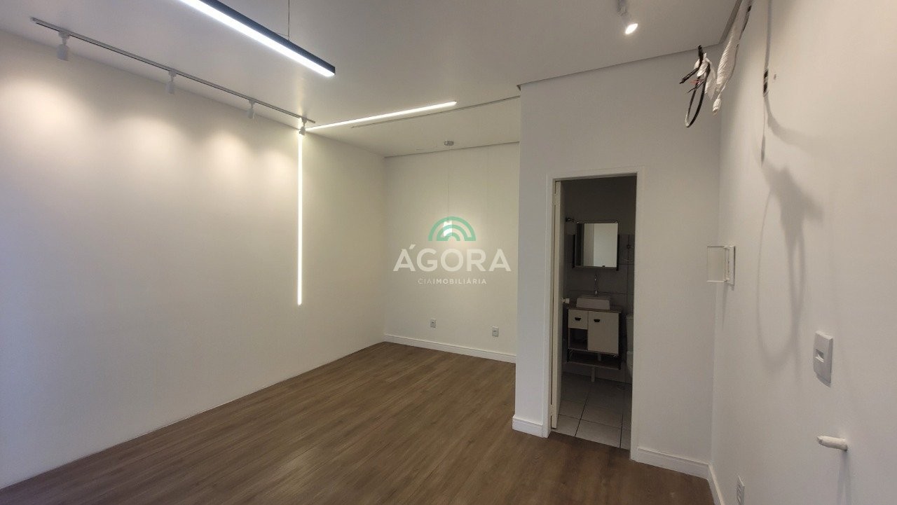 Excelente sala comercial com 43 m² com recepção, localizada em avenida de grande fluxo, próxima à estação de trem, garantindo fácil acesso e alta visibilidade para o seu negócio. Ambiente moderno, com piso de excelente acabamento e iluminação em led, proporcionando conforto e sofisticação. Conta com banheiro privativo e estacionamento privado, diferencial importante para clientes e colaboradores. Ideal para escritórios, consultórios, estética, advocacia ou prestação de serviços.