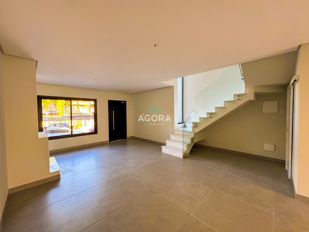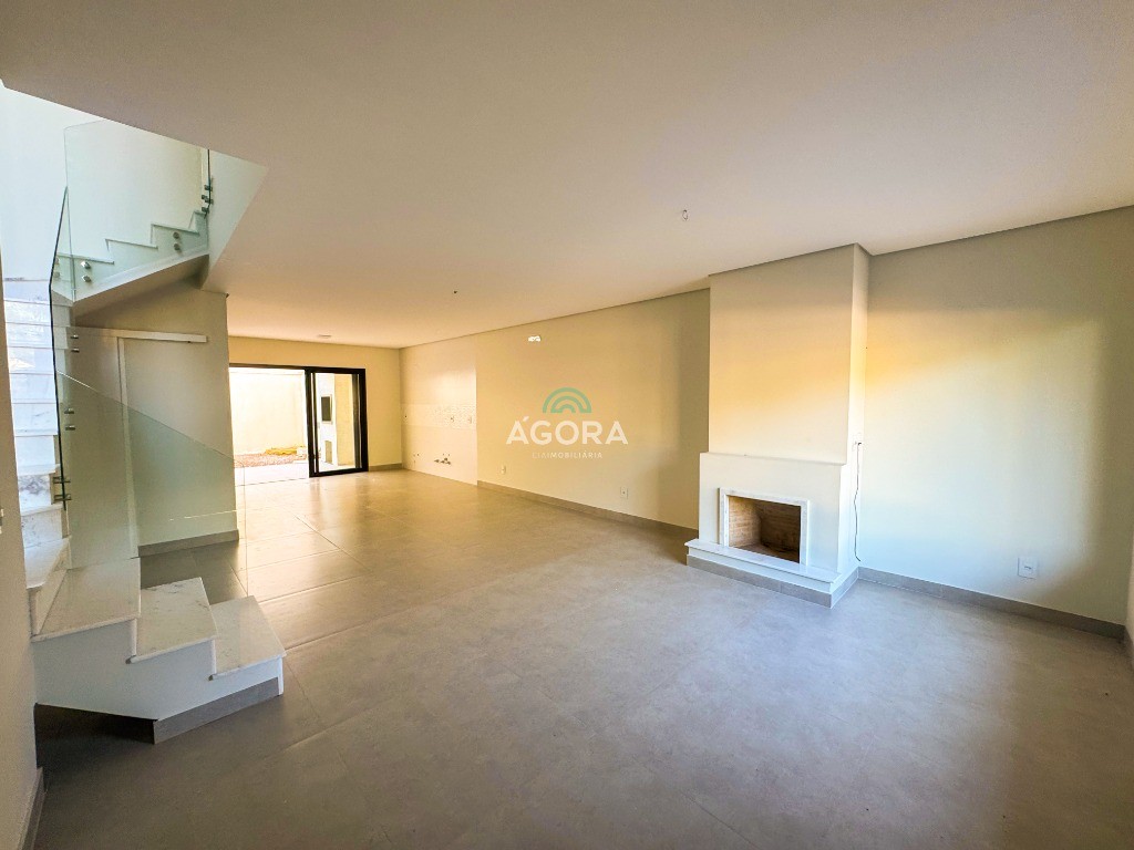 Ótimo sobrado com 169,90m² privativos, 3 (três) suítes sendo uma master, sala íntima que pode ser usada como escritório, sala de estar com lareira integrada com a sala de jantar, cozinha estilo americana, área de serviço, lavabo, área gourmet com churrasqueira, pátio nos fundos com espera para piscina, espera de água para geladeira, vaga para 2 (dois) carros.