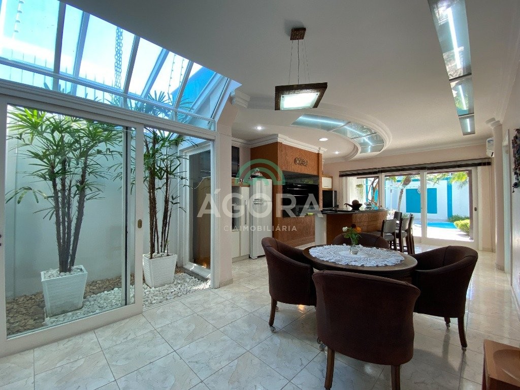 Ágora cia imobiliária venda: sobrado com 540m² privativos, 4(quatro) suítes, sendo 1(um) suíte master com banheira de hidromassagem, closet e sacada, 2(duas) salas de estar com lareira, sala de jantar, cozinha planejada, espaço gourmet e bar, lavabo, área de serviço, banheiro externo, pátio com piscina e quiosque, terceiro pavimento com academia completa, e 1(uma) das suítes, vagas para 4(quatro) veículos. Localizado no bairro jardim do lago.