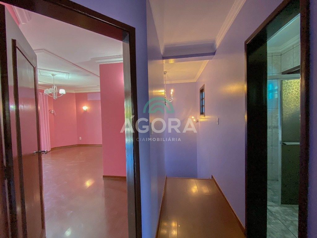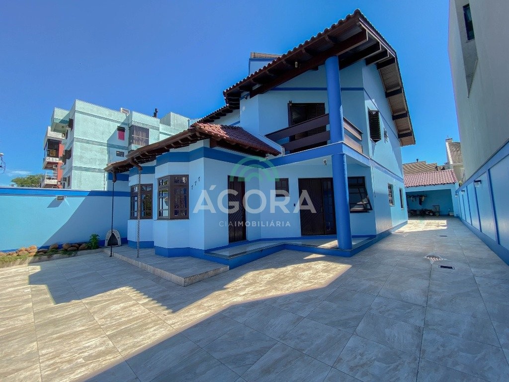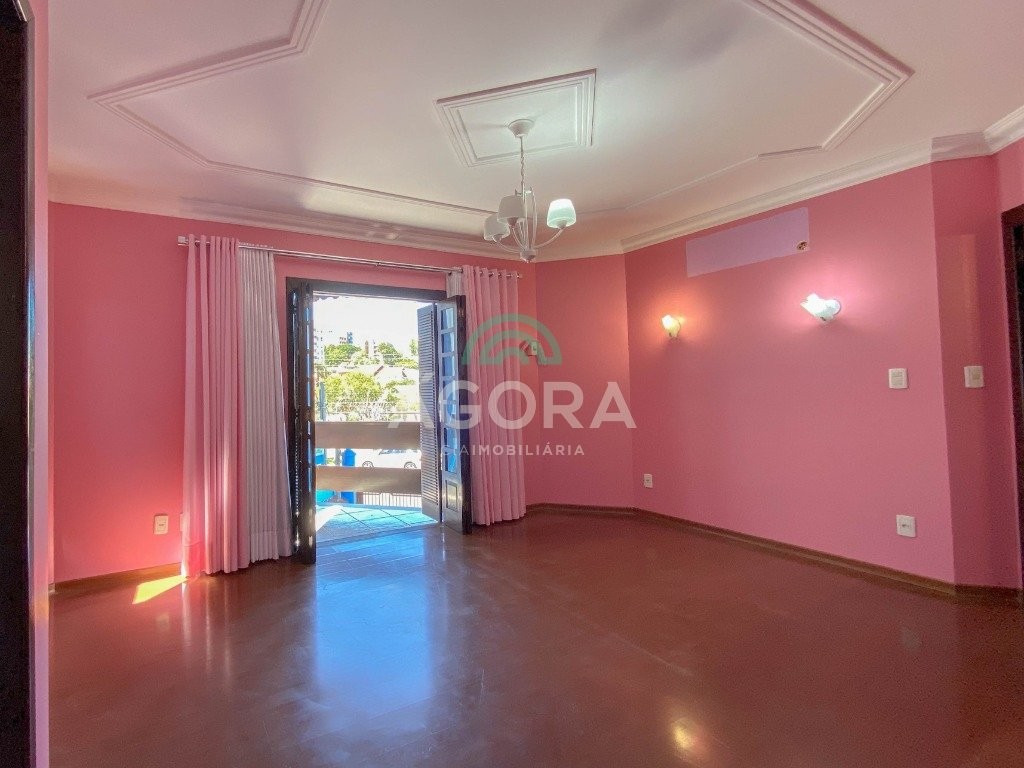 Sobrado com 265,42m² privativos, 3(três) dormitórios, sendo 1(uma) suíte máster com sacada, closet e banheira de hidromassagem, banheiro social, lavabo, hall de entrada, escritórios com entrada individual, living para 2(dois) ambientes com lareira e churrasqueira, dependência de empregada, despensa, área de serviço, energia solar, vagas cobertas para 3(três) veículos lado a lado. Excelente padrão de construção, material de primeira linha. Em frente à uma praça, localizado no bairro centro.