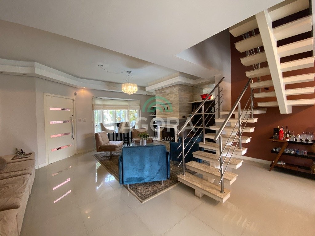 Ágora cia imobiliária vende: sobrado de 300m² privativos com 4(quatro) dormitórios, todos com sacada e 1(um) suíte máster com closet e banheira de hidromassagem, living integrado entre sala de estar com lareira, sala de jantar e cozinha planejada, área de serviço, banheiro social, lavabo, amplo pátio aos fundos, piscina com aquecimento e cascata, espaço gourmet completo com churrasqueira, garagem para 4(quatro) veículos sendo 2(duas) cobertas lado a lado. Ficam no imóvel todos os móveis sob medida e splits. Localizado no bairro bela vista, ótima região residencial, com fácil acesso aos principais comércios, academias e ao park shopping canoas.
