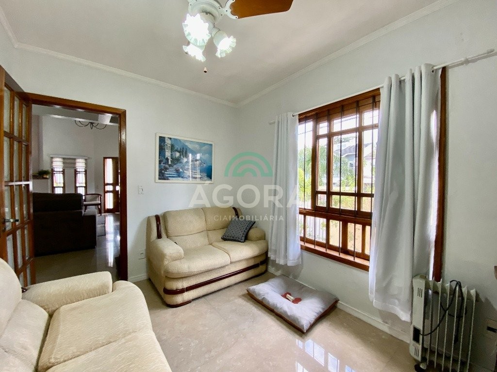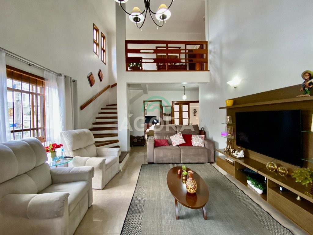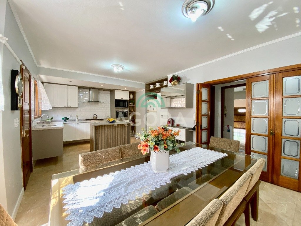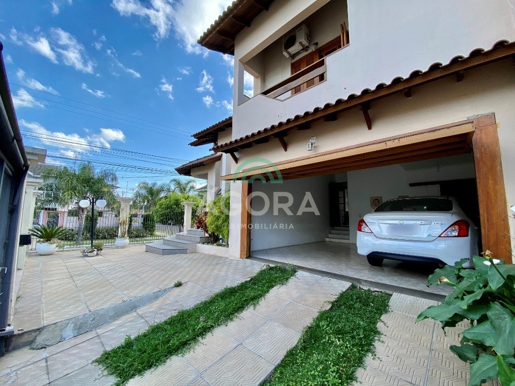 Ágora cia imobiliária vende: sobrado de 255m² privativos com 3(três) dormitórios sendo 1(um) com closet e 1(uma)suíte com banheiro e closet, home office, sala de estar, com lareira sala de jantar e cozinha planejada, banheiro social, lavabo, área de serviço, salão de festas aos fundos, lareira, espaço gourmet completo com churrasqueira, área de serviço e banheiro, amplo pátio, garagem para 4(quatro) veículos sendo 2(duas) cobertas e armário de inverno. Permanece todos os móveis sob medida e aparelhos de ar condicionado. Localizado na melhor região de canoas, unindo conforte, tranquilidade e segurança.
