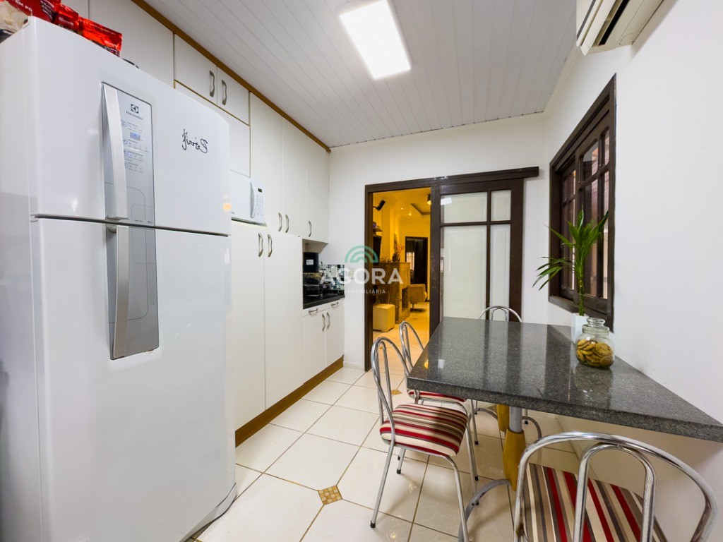 Casa térrea de 204m² privativos, com 3 (três) dormitórios, sendo 1 (um) suíte, sala de estar com lareira, sala de jantar e cozinha integradas, hall de entrada, 2 (dois) banheiros sociais, área de serviço, espaço gourmet completo com churrasqueira, garagem para vagas para 6 (seis) veículos, sendo 2 (duas) descobertas, amplo pátio em frente e aos fundos com piscina e canil. Permanece no imóvel todos os móveis planejados, aparelhos de ar condicionado, lustres e cortinas. Localizado em um excelente região com fácil acesso aos principais pontos da cidade e comércios locais. Rua tranquila e segura.