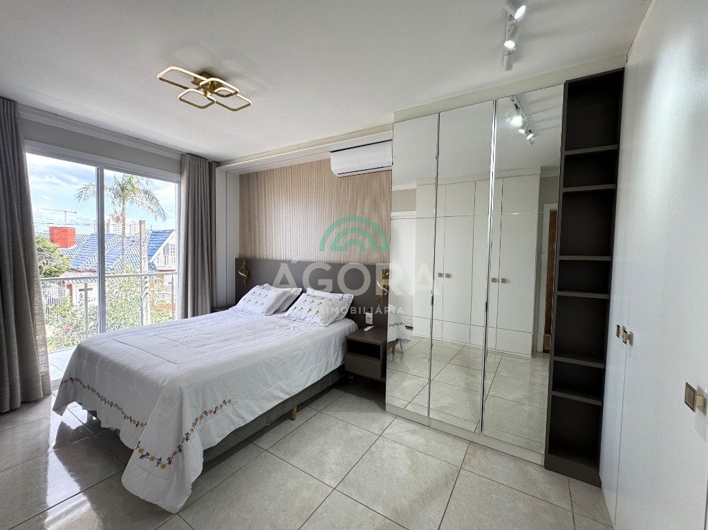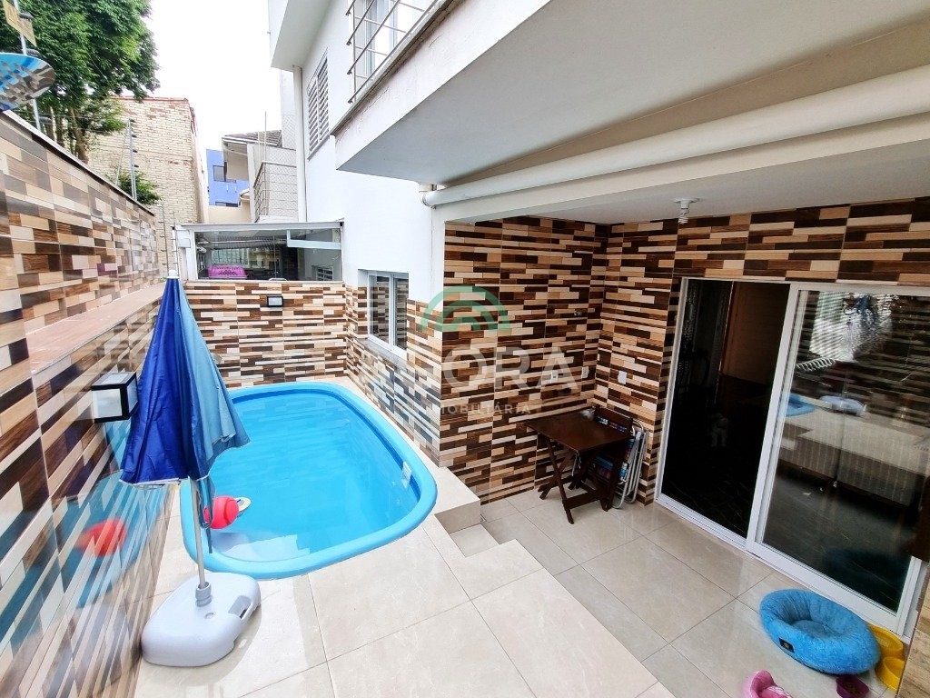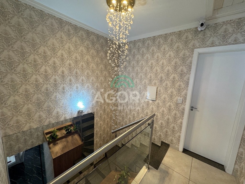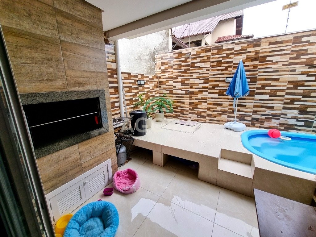 Ágora Cia Imobiliária vende: Excelente sobrado mobiliado com 270m² privativos, composta por 3 (três) dormitórios, sendo 1 (uma) suíte no pavimento superior, além de 1 (um) escritório no térreo que pode ser transformado em quarto adicional. Possui sala de estar e jantar integradas com pé-direito duplo e lareira, cozinha e área de serviço independentes, além de garagem para 4 (quatro) veículos, sendo 2 (duas) vagas cobertas. Aos fundos, conta com amplo pátio com piscina aquecida por energia solar e quiosque completo com área gourmet, sala de jogos e banheiro privativo. Localização privilegiada, com fácil acesso às principais vias da cidade e à cidade de Porto Alegre, próxima a supermercados, farmácias e escolas.