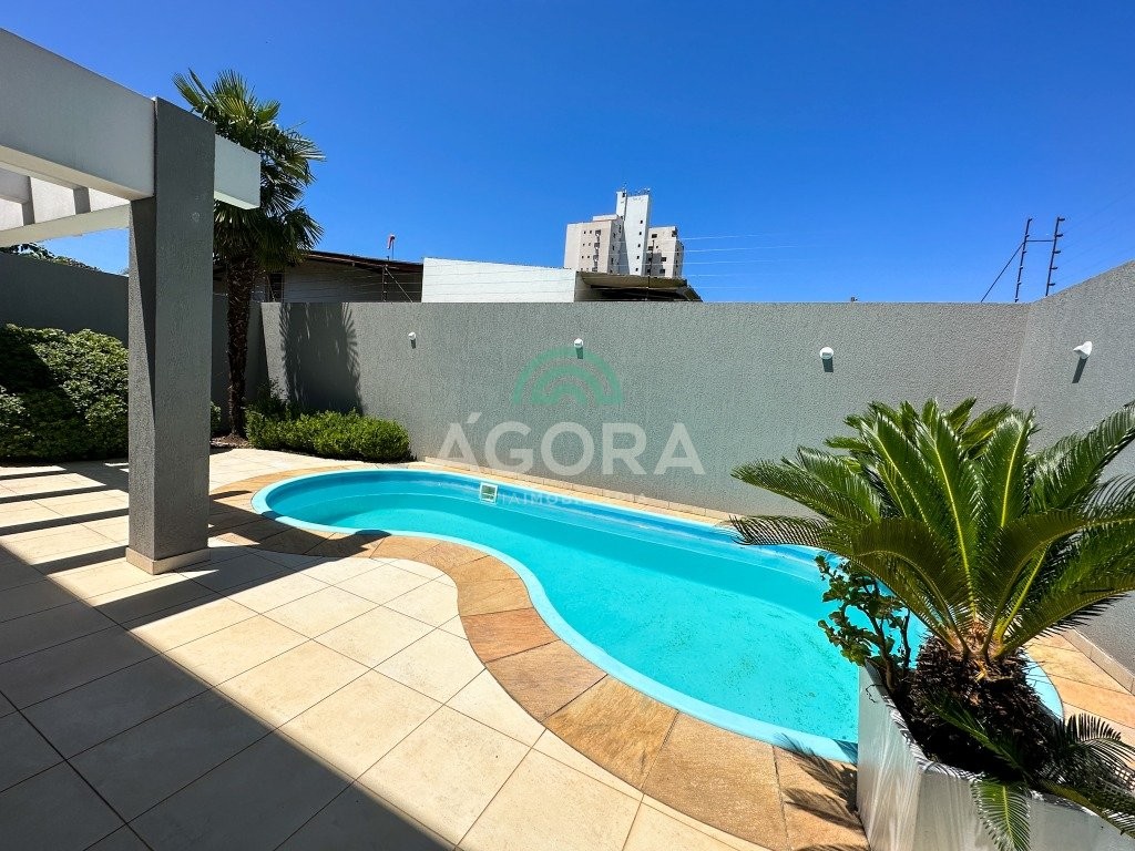 Ágora cia imobiliária vende: belíssimo sobrado com 267,37m² privativos, localizado em área nobre da cidade; próximo ao novo shopping designer imponente uma ampla sala de estar. Com lareira sala de jantar cozinha semi mobiliado com churrasqueira e acesso para área de churrasco piscina Área de serviço com banheiro escritório sala de tv parte superior 05 dormitórios, sendo 3 suítes vagas para 05 carros alarme e câmeras de segurança estuda dação como parte de pagamento.