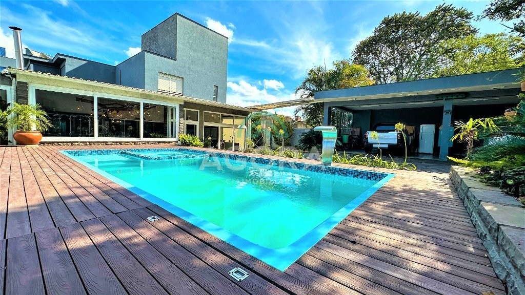 Ágora cia imobiliária vende: belíssimo sobrado de 130,61m² privativos, com 4 (quatro) suítes com banheiro privativo, sendo 3 (três) suítes com closet, suíte casal com banheira dupla de hidromassagem, sacada, espaço gourmet, lareira, lavanderia, piscina, garagem coberta para 4 (quatro) carros. O sobrado é todo automatizado, com ar condicionado e água quente, fino padrão de acabamento, iluminação toda em led. Ele é construído em 2 (dois) terrenos de 22x50, possui um anexo que pode ser usado como empresa ou home office com 93,65m² privativos e uma vaga de garagem. Sobrado extremamente bem construído, com grandes ambientes para você e sua família curtirem com conforto e segurança. Aceita dação por casa ou apartamento de menor valor. Aceita financiamento e fgts.