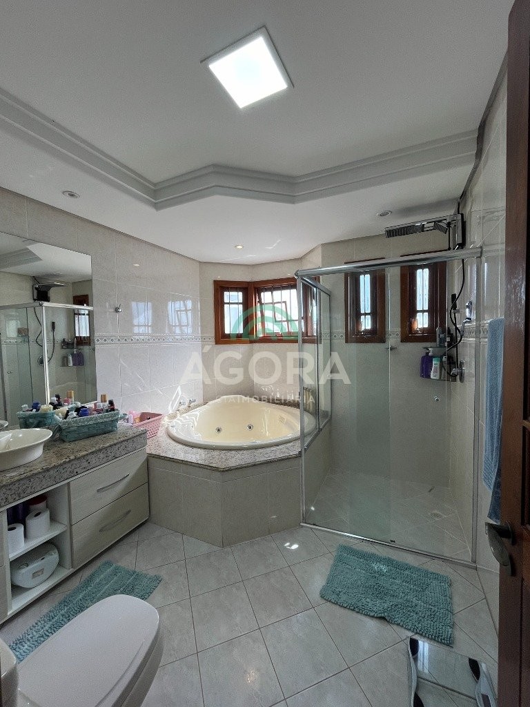 Casa térrea composto por 3 níveis de construção de 312,42 m², terreno com 360m² (12x30) com ótima posição solar , possui placa solar. No primeiro nível possui garagem escavada com capacidade para até 06 carros (04 cobertos) e sistema de gás p45. No segundo nível possui 3 (três) dormitórios sendo 2 (duas) suítes e 1 (uma) suíte master com banheira de hidromassagem, closet, (ar condicionado split em todas as suítes)12000btu na suíte master e 9000btu nas demais suítes, sala de estar com rebaixo em gesso, sala de jantar, lavabo, cozinha sob medida, área de serviço, despensa. A área externa do pátio conta com um belo espaço gourmet com churrasqueira totalmente fechado com portas de vidro de correr e lavabo, piscina de 8m x 4m x 1,40m (altura) com espera para aquecimento solar, iluminação de led com deck de madeira e cascata, espera para aquecimento, deck em pinus autoclavado, aberturas em louro freijó. No terceiro pavimento possui escritório/sala de tv e academia, ar condicionado split. 24000btu e ponto de gás para instalação de lareira. Todo murado e gradeado, sistema monitoramento por câmeras, cerca elétrica. Próximo ao park shopping canoas. Aceita financiamento e fgts.