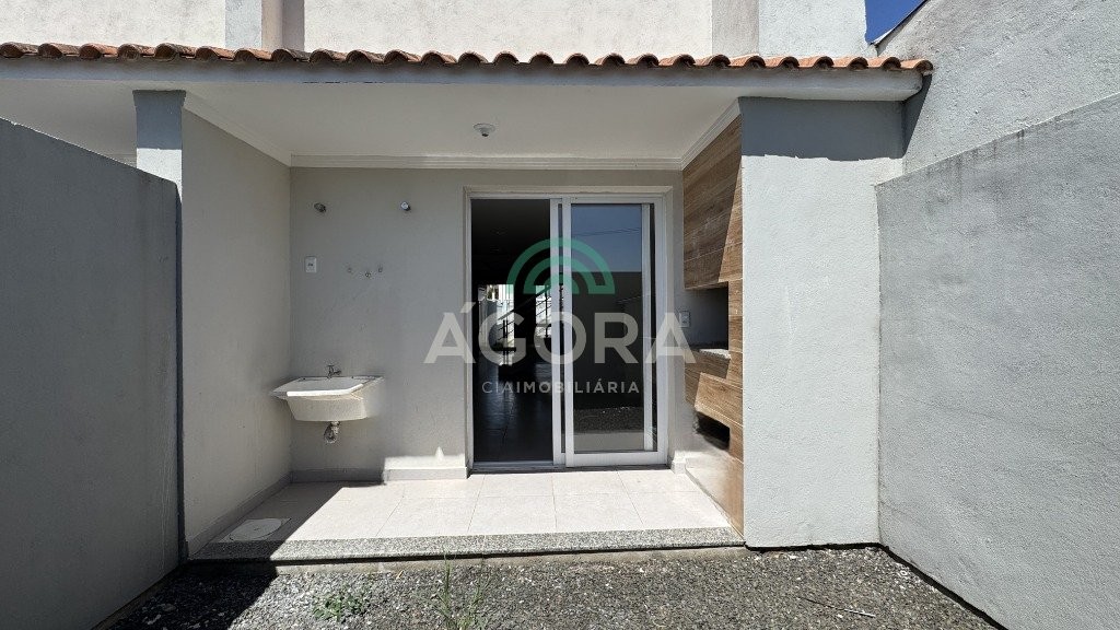Ágora Cia. Imobiliária vde. Sobrado 3 (três) dormitórios, banheiro social, sala de estar e jantar integradas, lavabo, cozinha, área de serviço, área coberta com churrasqueira podendo usar como garagem coberta, 2 (duas) vagas descobertas adicionais, posição solar norte. Próximo a transporte, comércio, escolas e demais serviços.
