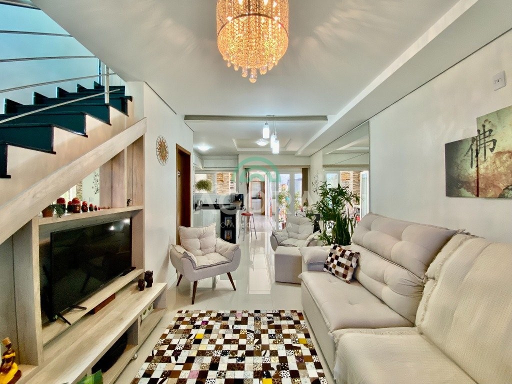 Ágora Cia Imobiliária: Sobrado semimobiliado de 100m², com sala de estar aconchegante com lareira, cozinha planejada, área de serviço, pátio privativo, churrasqueira, 3 (três) dormitórios, sendo 1 (uma) suíte e 2 (duas) vagas de garagem. Agende sua visita!