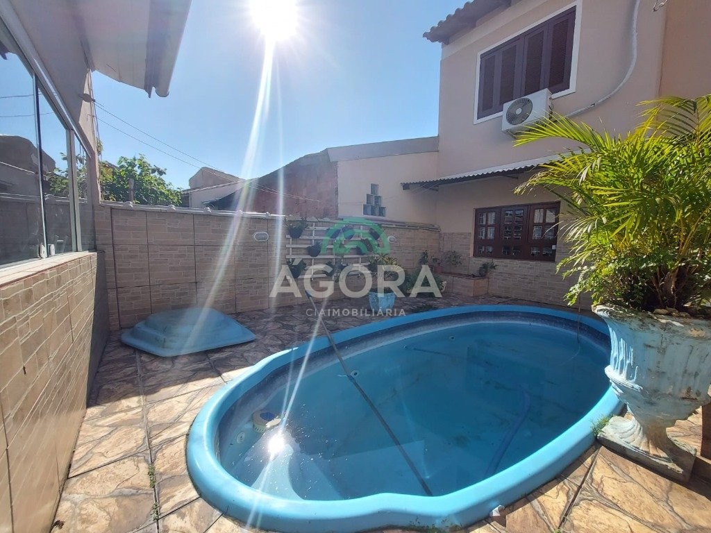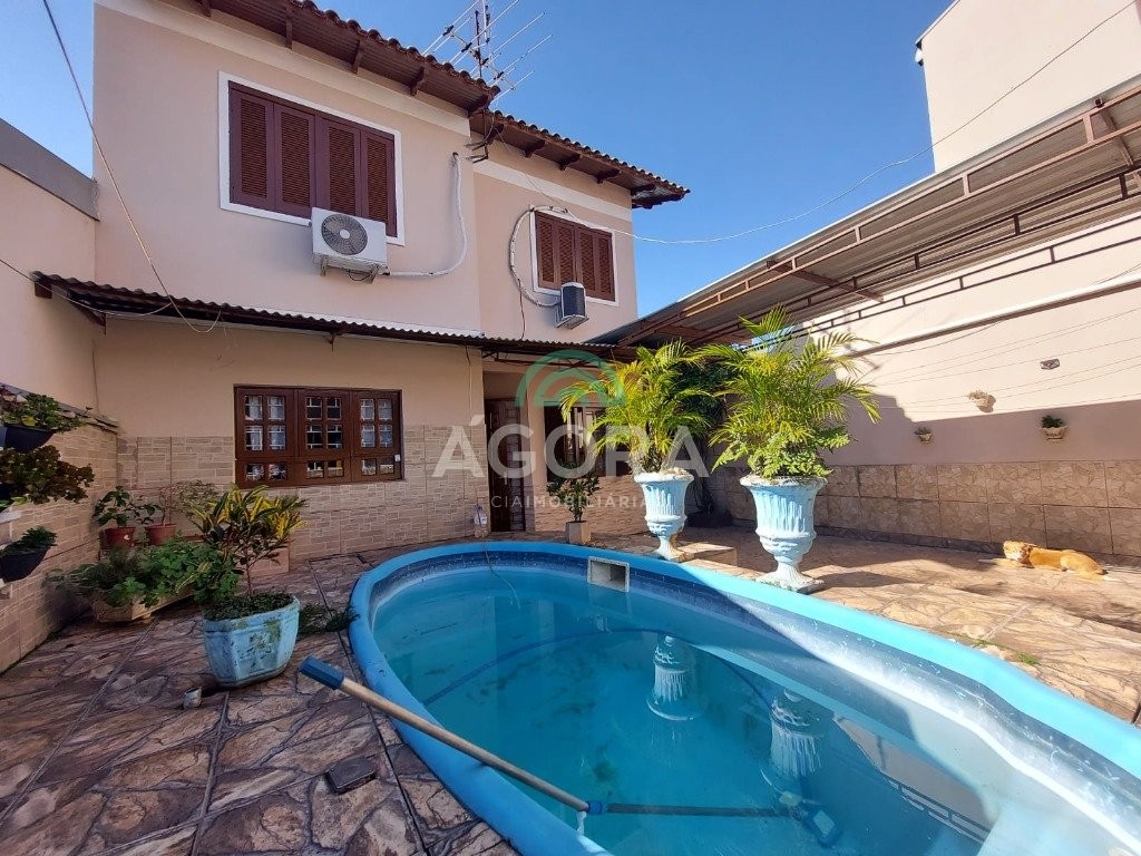 Sobrado de 189m² de área construída, com 3 (três) dormitórios, sendo 1 (uma) suíte, sala de estar e jantar, cozinha, banheiro socia. Nos fundos, uma excelente piscina e um amplo salão de festas com churrasqueira, pia e banheiro. Vaga para 2 (dois) carros lado a lado localizado no bairro harmonia, próximo ao carrefour, canoas shopping e diversos comércios.