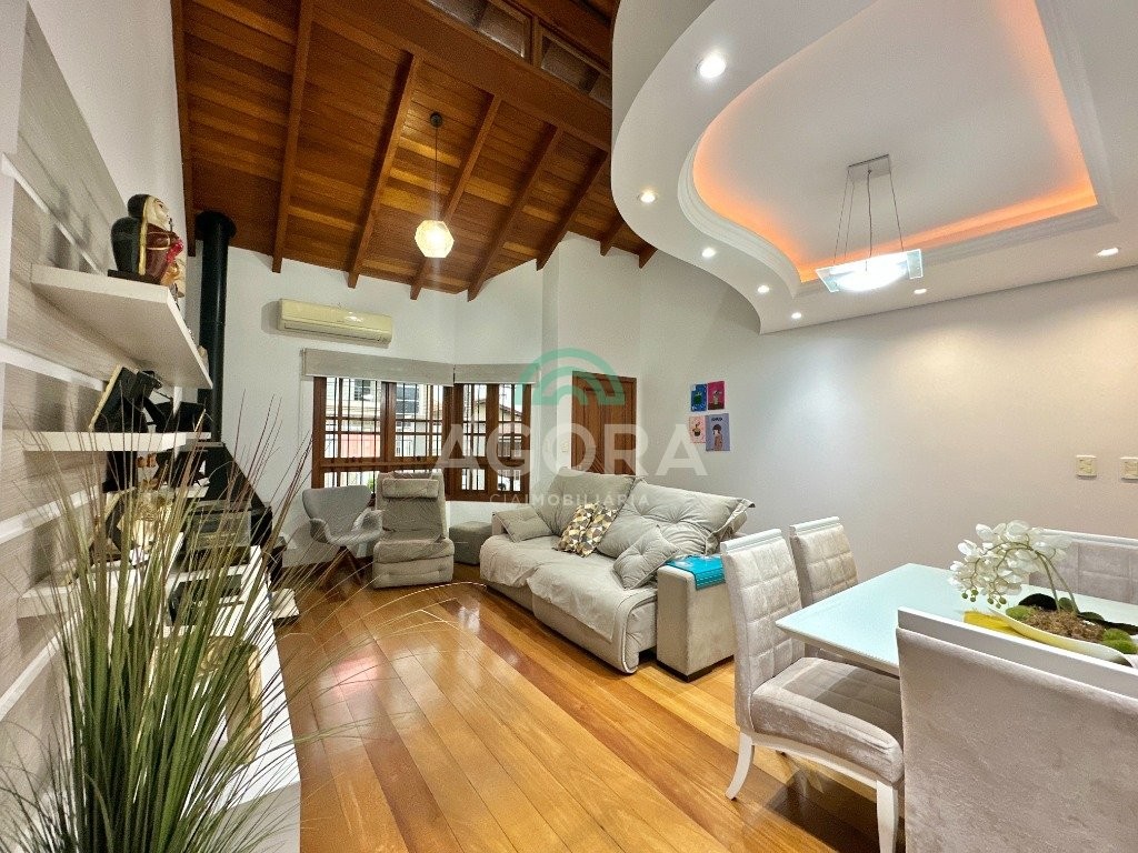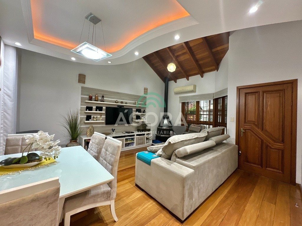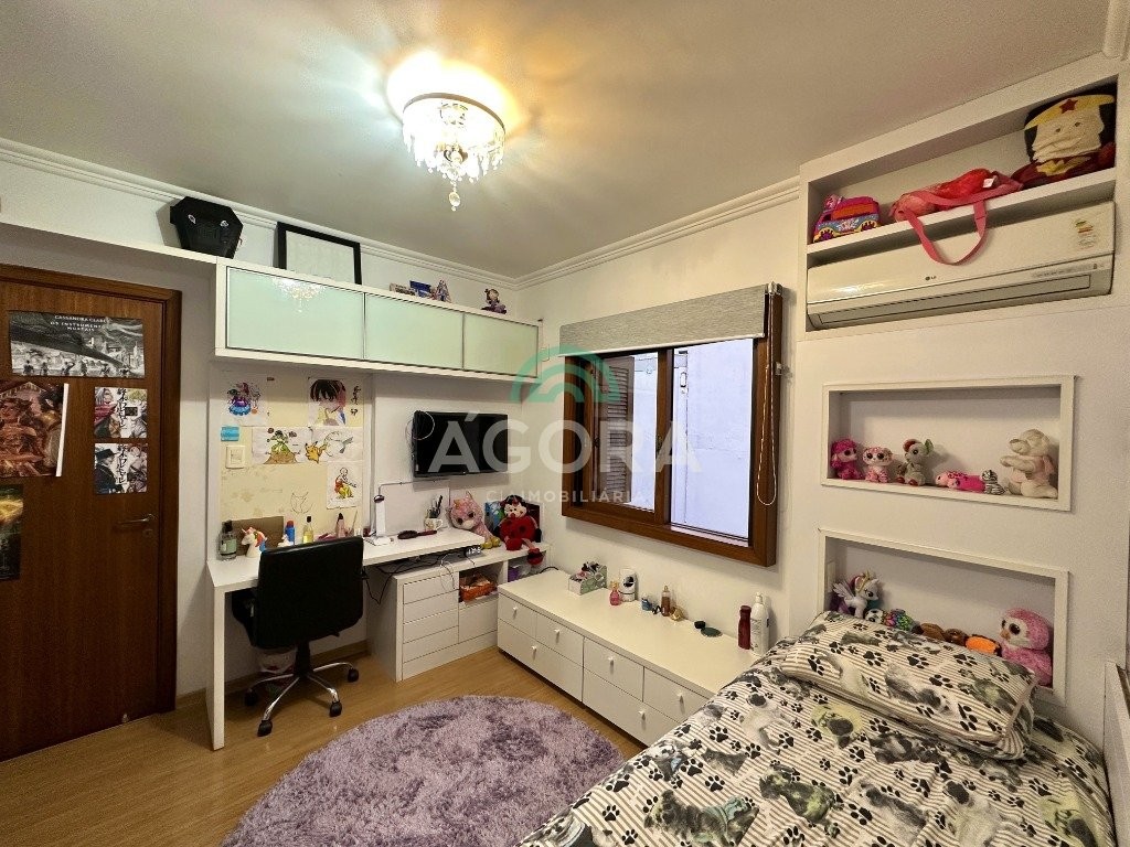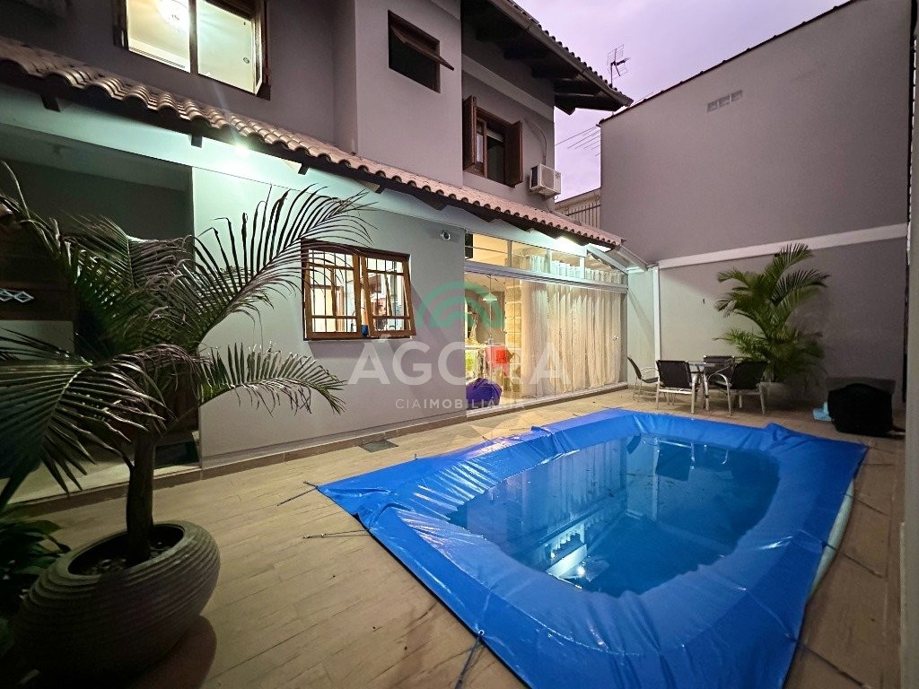 Ágora cia imobiliária vende sobrado com 149 m² de área privativa, com 3 (três) dormitórios, sendo uma suíte com hidromassagem dupla, closet, banheiro suíte, sala estar/jantar com sanca de gesso e lareira metálica, cozinha, espaço gourmet com churrasqueira, piscina aquecida. A casa tem 5 (cinco) esperas para split, tabuão na sala, porcelanato 80x80cm, laminado do pav. Superior, escada revestida com madeira de lei, esquadrias com madeira de lei, alarme, portão automatizado, localizado próximo ao park shopping canoas.
