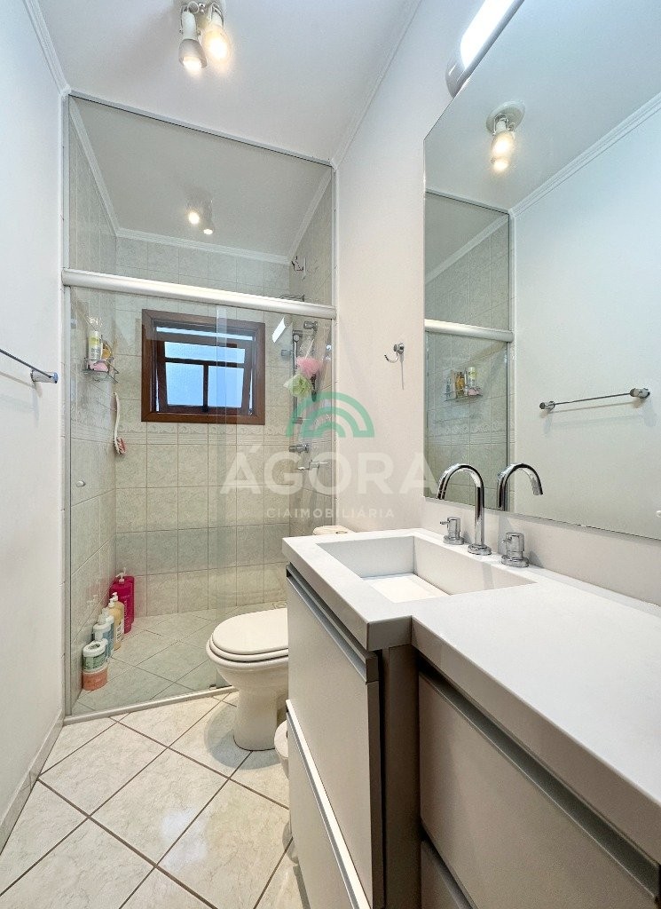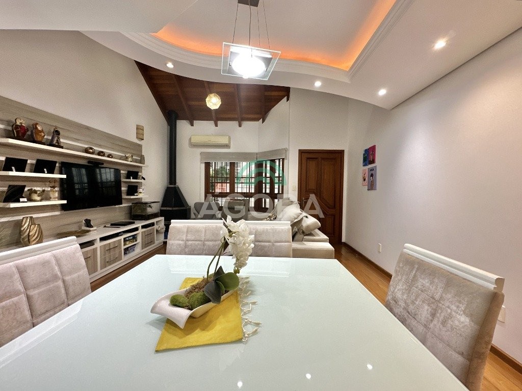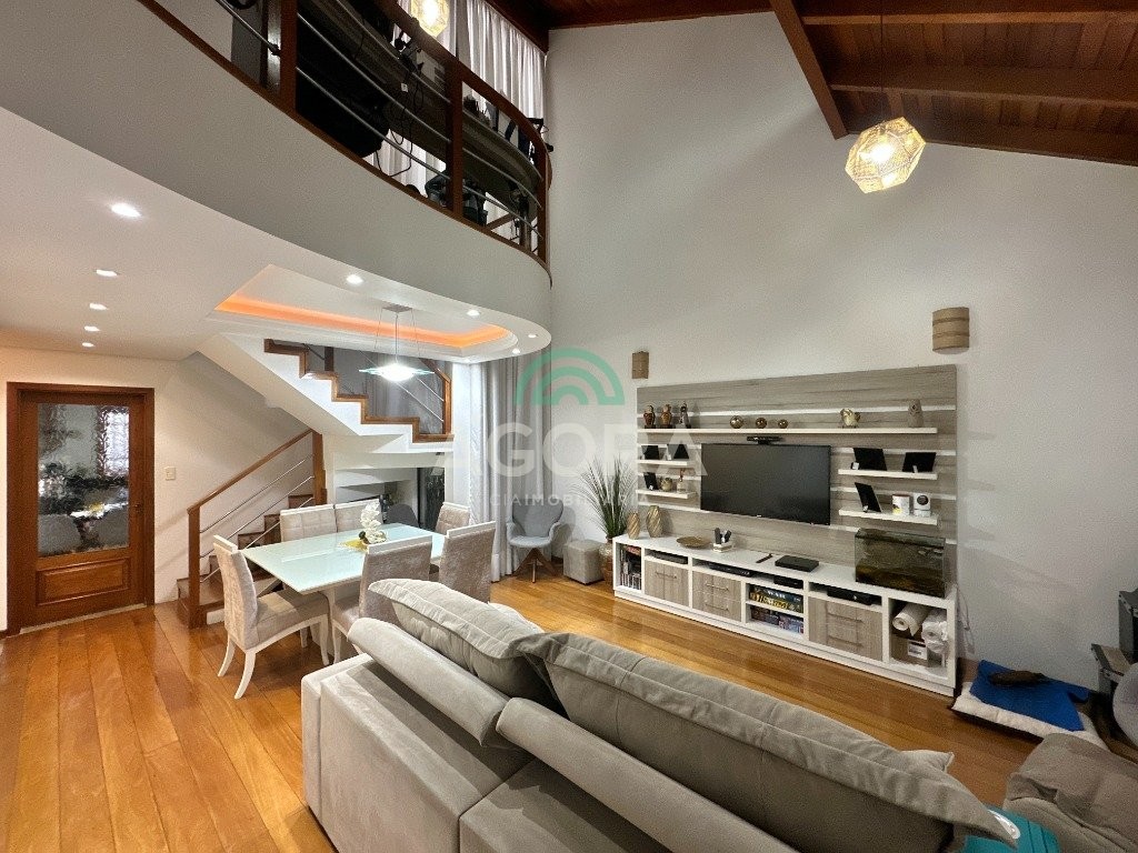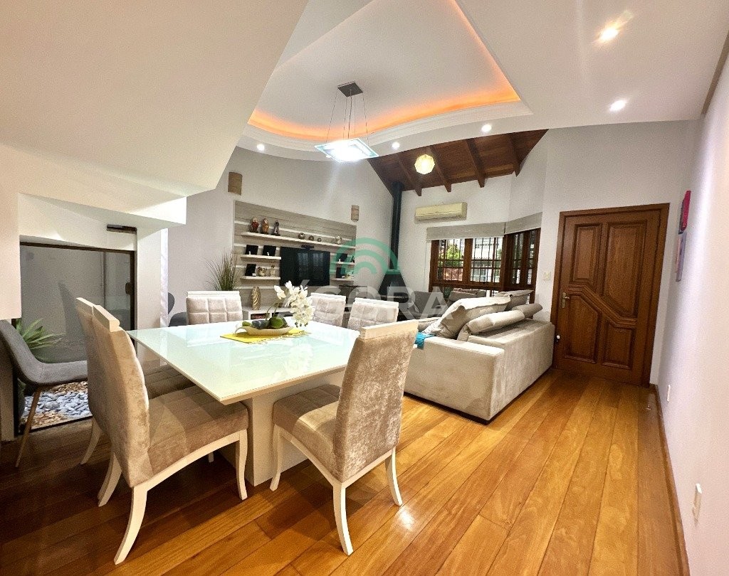 Ágora cia imobiliária vende sobrado com 149 m² de área privativa, com 3 (três) dormitórios, sendo uma suíte com hidromassagem dupla, closet, banheiro suíte, sala estar/jantar com sanca de gesso e lareira metálica, cozinha, espaço gourmet com churrasqueira, piscina aquecida. A casa tem 5 (cinco) esperas para split, tabuão na sala, porcelanato 80x80cm, laminado do pav. Superior, escada revestida com madeira de lei, esquadrias com madeira de lei, alarme, portão automatizado, localizado próximo ao park shopping canoas.