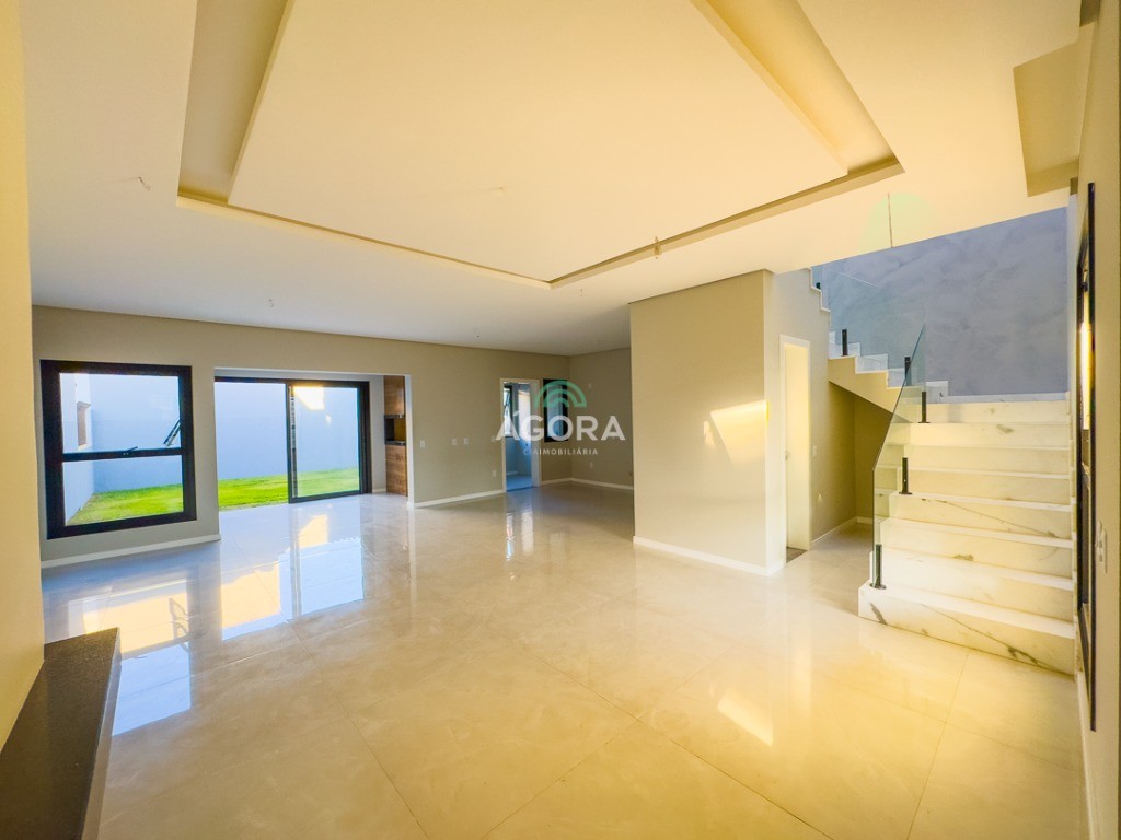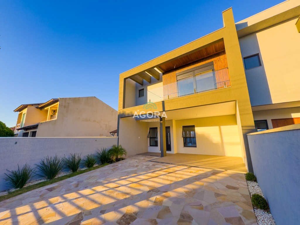 Sobrado moderno com 194,36m² privativos, 4 (quatro) dormitórios sendo 2 (duas) suítes, closet, living integrado, sala de estar com lareira, cozinha com espera para ilha, área de serviço, espaço gourmet com churrasqueira, amplo pátio nos fundos, vaga coberta para 2 carros mais 2 descobertas.